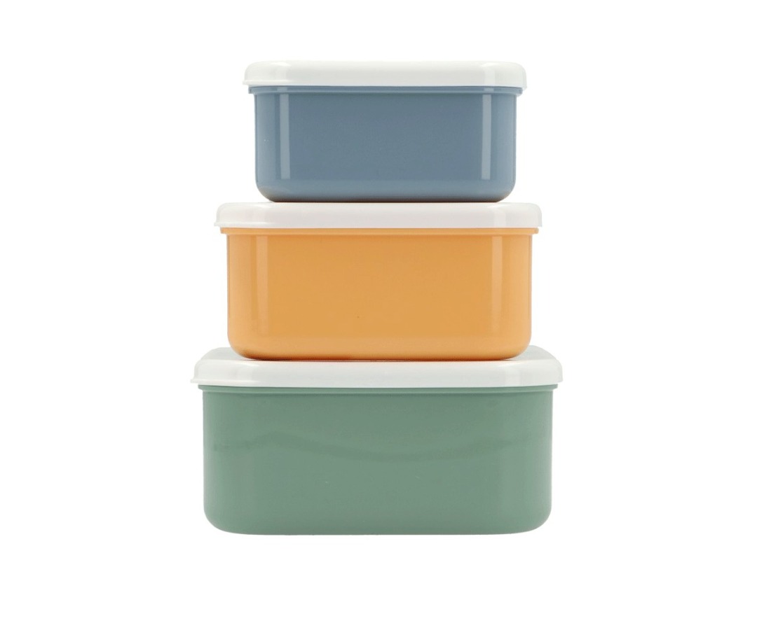 Ogni scatola ha una dimensione diversa per contenere tutti i tipi di snack o pasti e, se riposte una dentro l’altra, occupano pochissimo spazio.