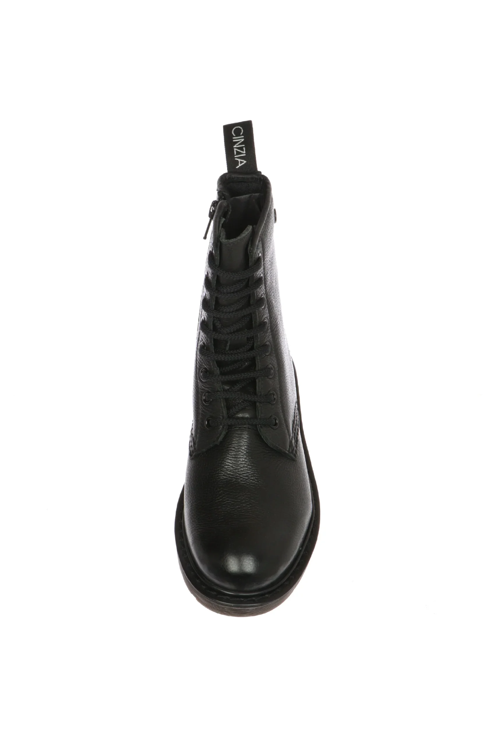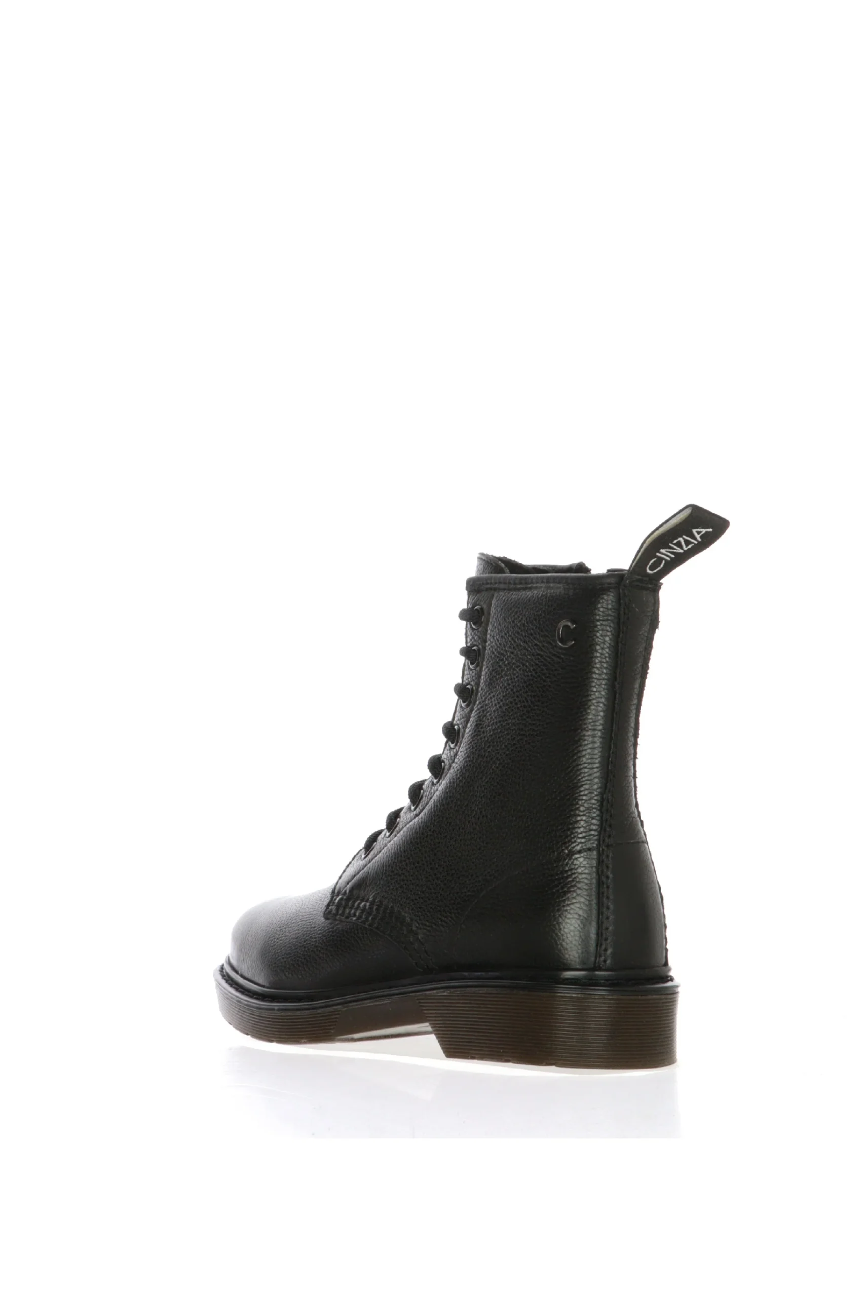 Anfibio in pelle morbida, dalla linea semplice e rock! Disponibile nel colore nero.Comodo e pratico, grazie alla doppia apertura, lacci e cerniera. Non lasciarti scappare il trend di questo inverno! Ideale da indossare con diversi tipi di outfit. รจ la scarpa perfetta per l’inverno! Cinzia Soft, calzature da vivere!