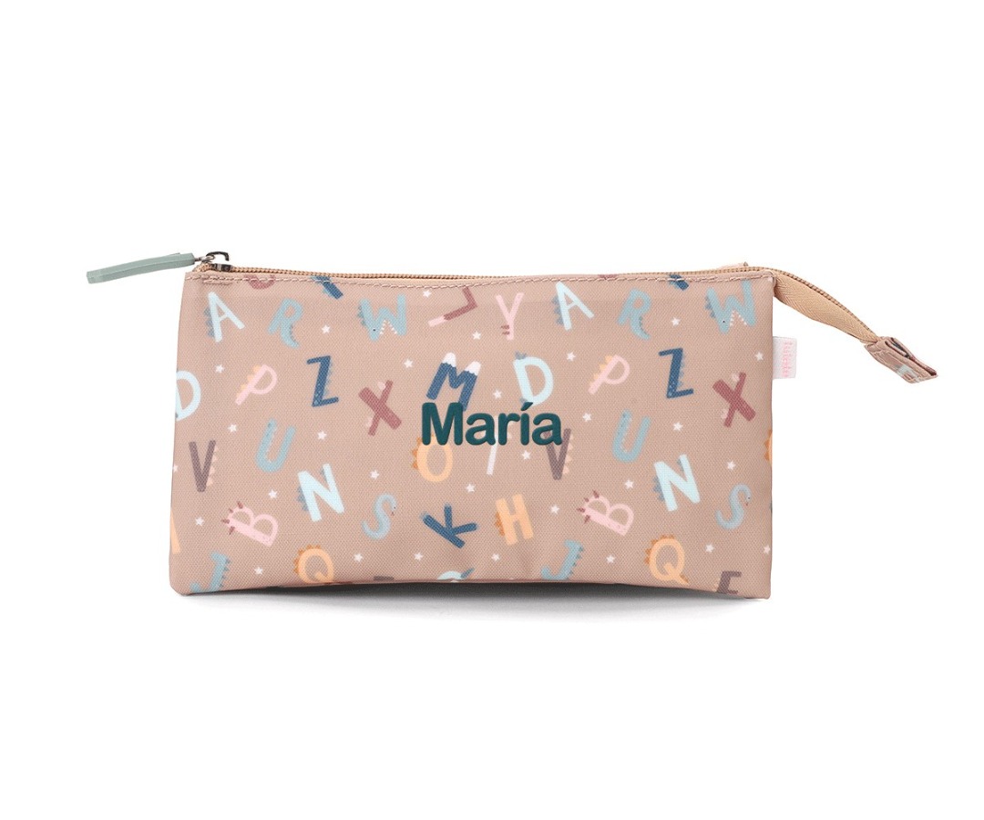 Astuccio a tre tasche con il disegno della collezione FunnyLetters Tutete 2025 per mettere in modo ordinato e ben separato tutto il materiale scolastico. E’ delizioso con il suo tiretto decorativo con un dettaglio che distingue ogni collezione.