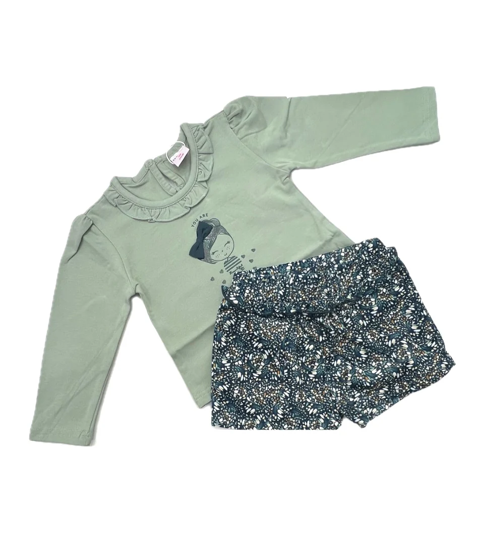 Ativo Completo Maglia Cotone Caldo e Short Velluto a Costine da Neonata