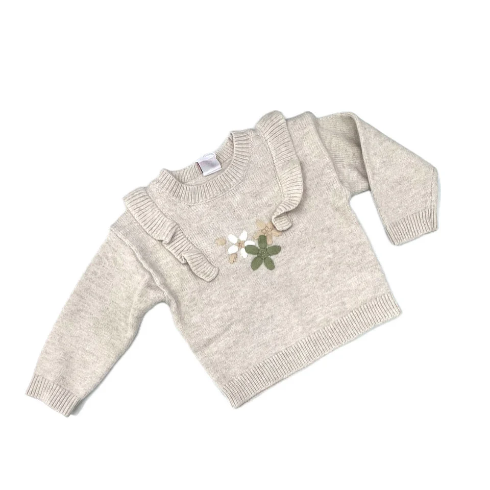 Ativo Pullover Lana Neonata con Rouches e Ricamo