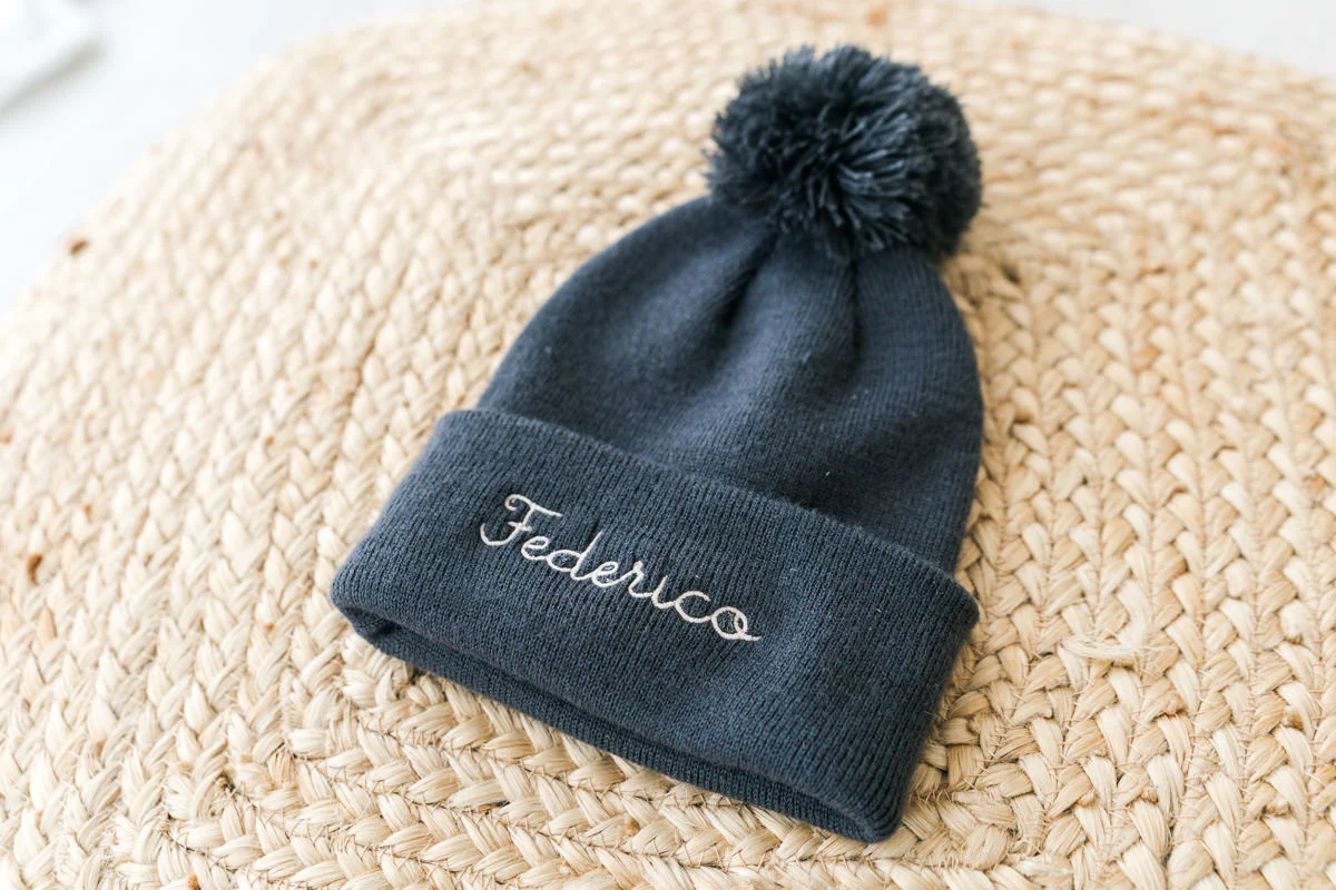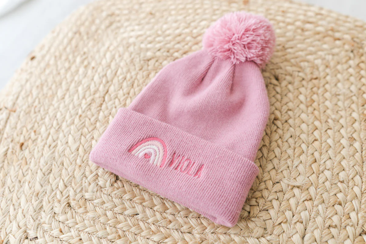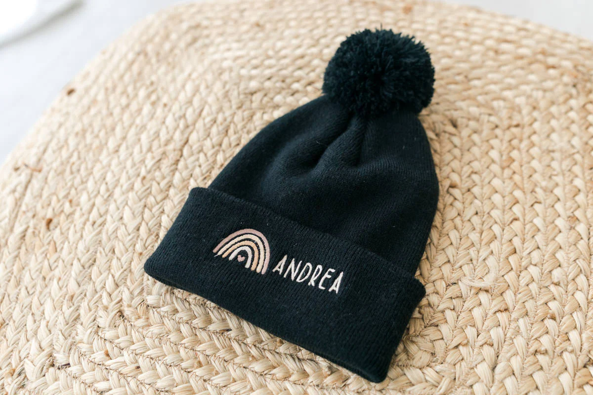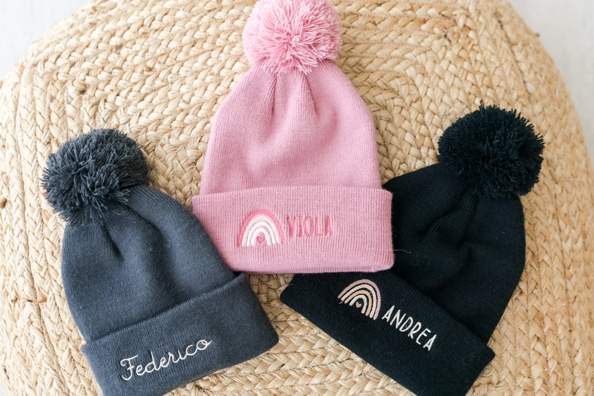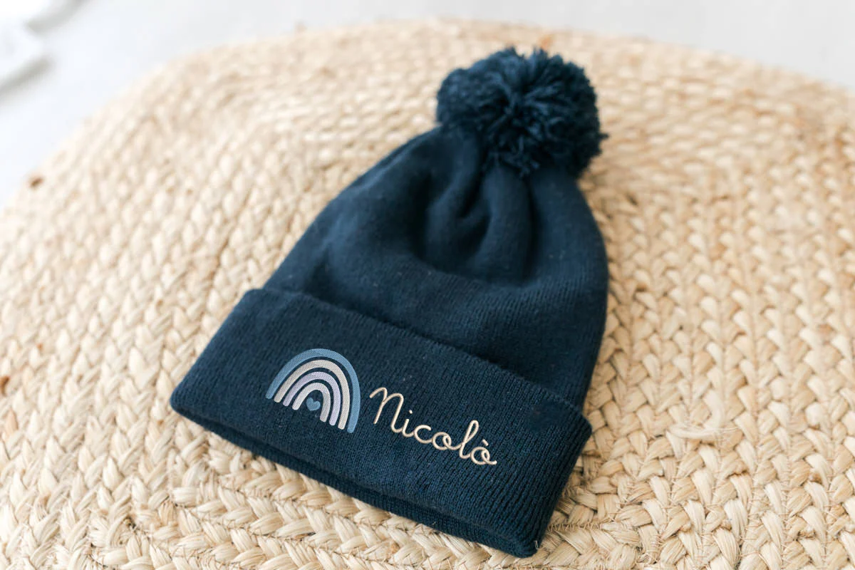 Berretto Bambino pon pon ricamato
