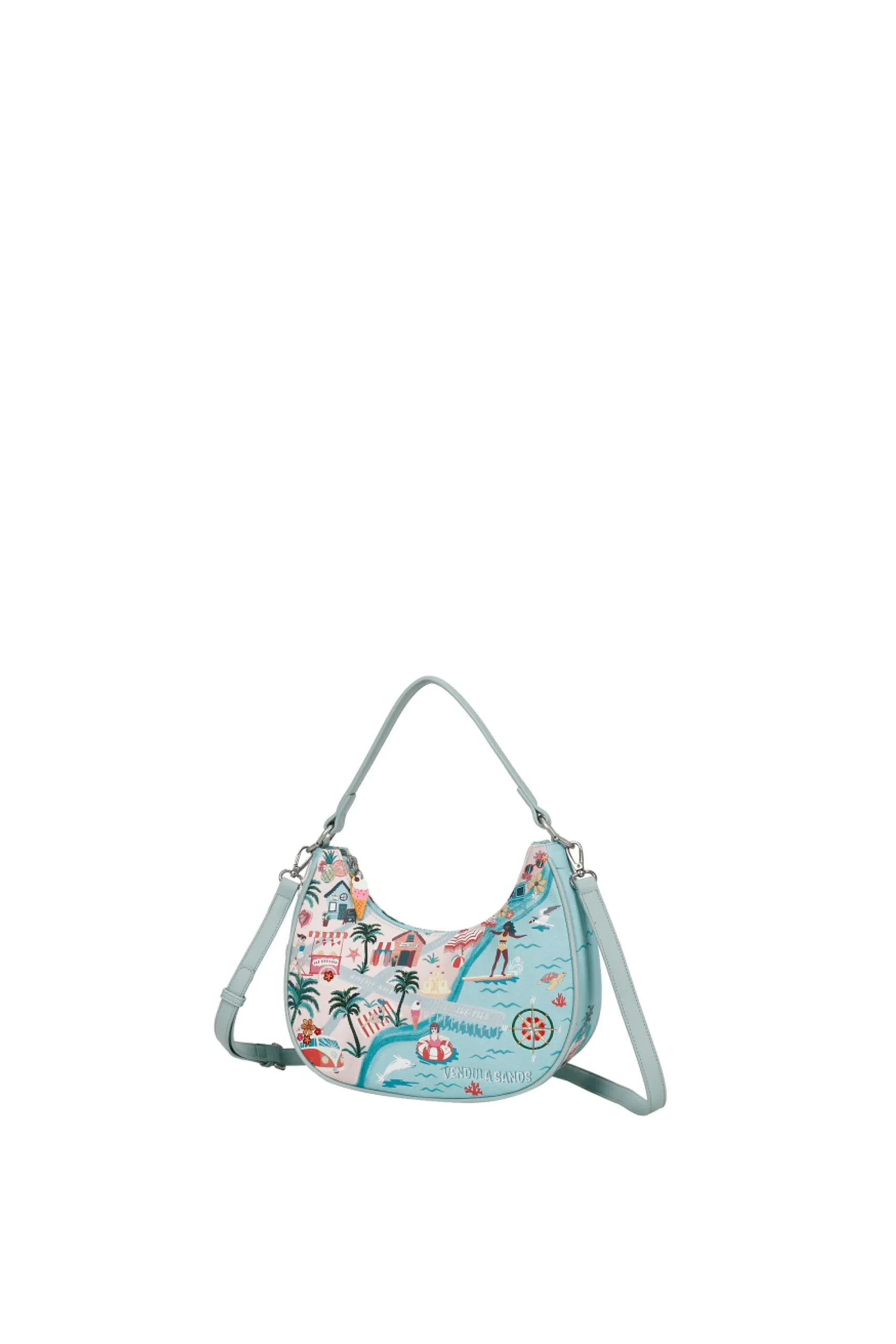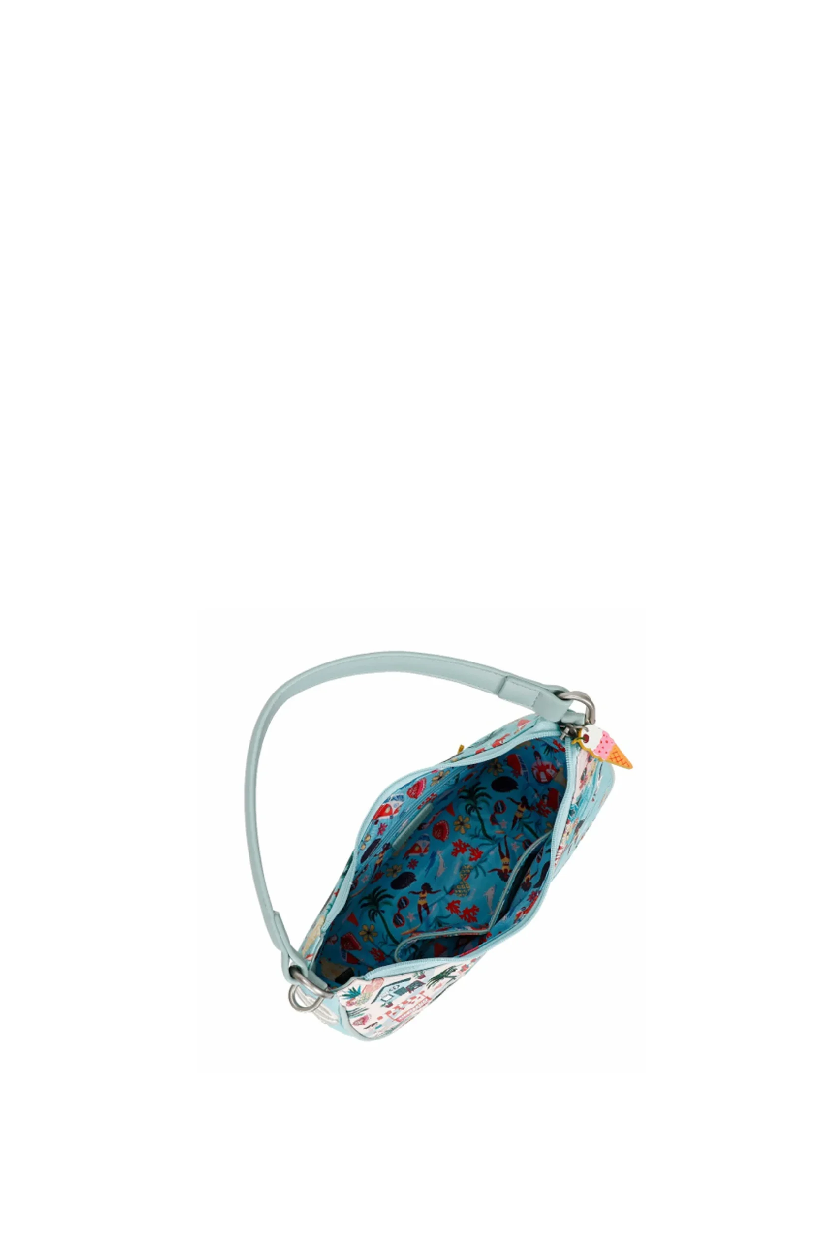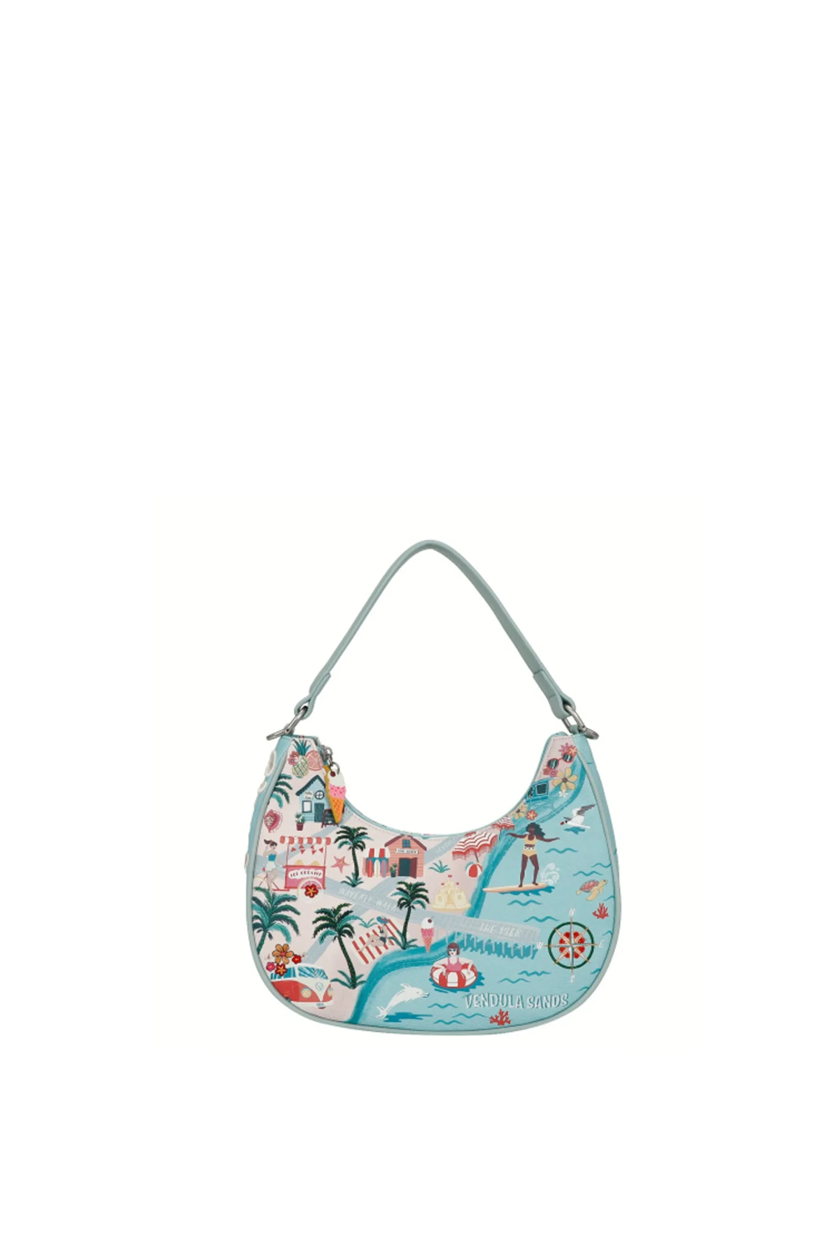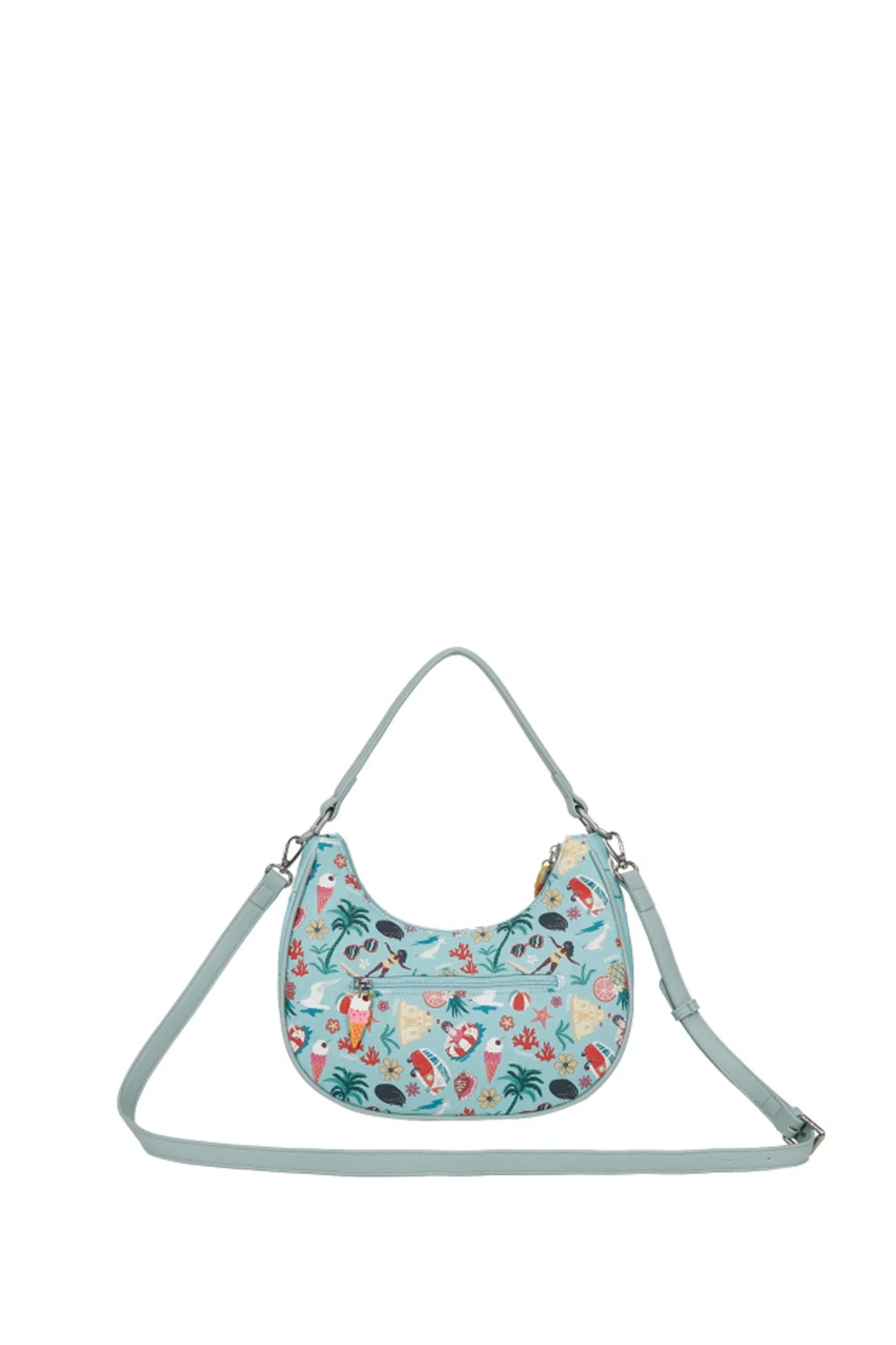 Mare, sabbia e sole! La Borsa Noa Vendula Sands puรฒ anche essere compatta, ma รจ sufficientemente capiente da contenere tutti i tuoi oggetti essenziali di ogni giorno o per un’uscita speciale, persino un libro da leggere sulla spiaggia! Presenta inoltre una chiusura sicura con zip e un simpatico tirazip a forma di gelato per tenere al sicuro i tuoi effetti personali. Portala a borsetta o a tracolla; questa gemma blu non mancherร di stupire. Decorata con una fresca grafica a tema spiaggia (delfini, stelle marine, palloni da spiaggia, salvagenti, conchiglie e altro ancora), ti manterrร nello spirito estivo. ร troppo tardi per iscriverti alle lezioni di surf?