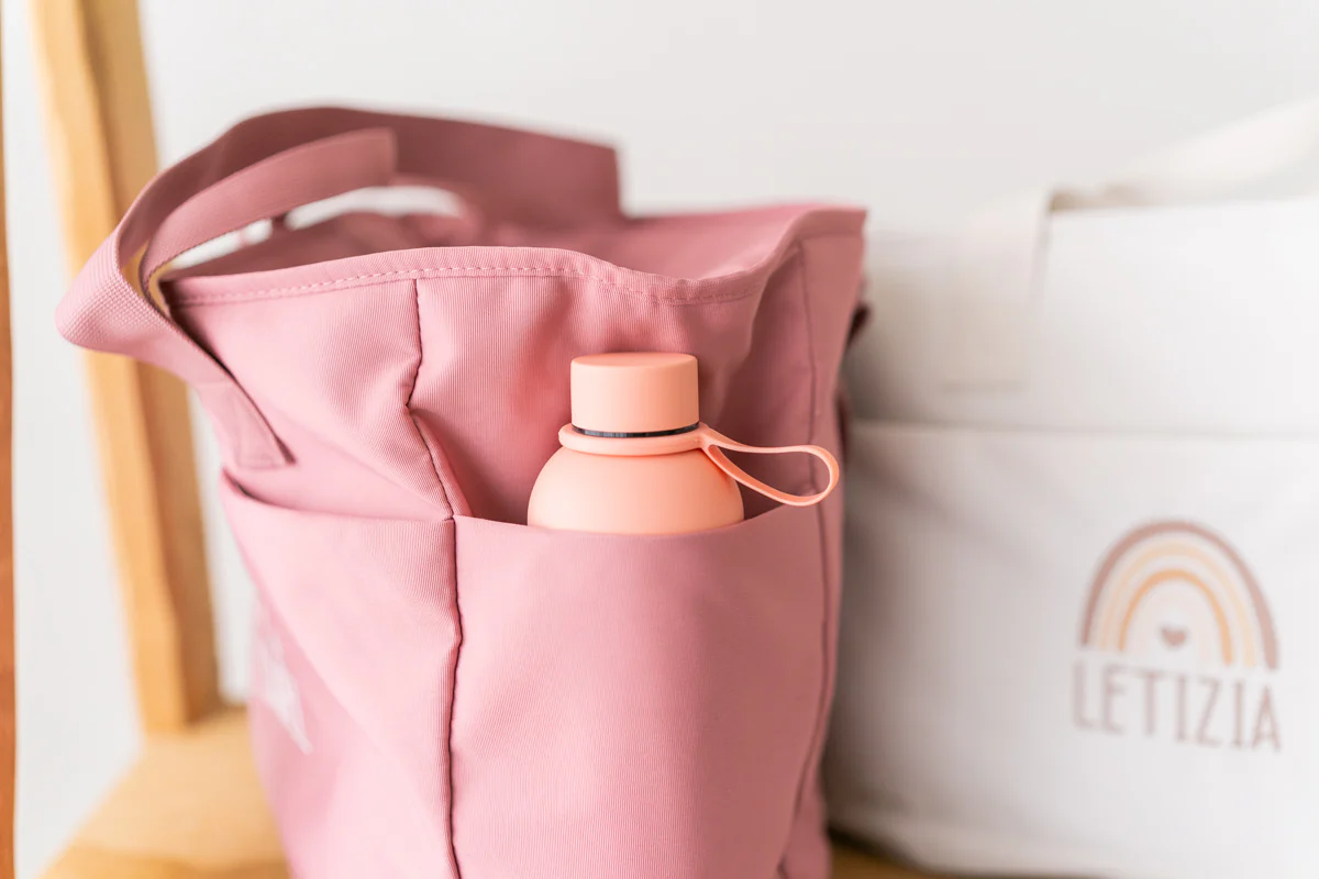 Realizzata in poliestere riciclato, è leggera ma resistente, con un design multifunzione che si adatta perfettamente al passeggino (grazie ai pratici ganci – non inclusi).
