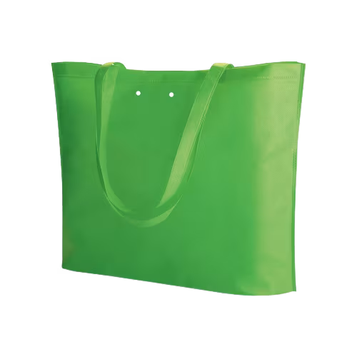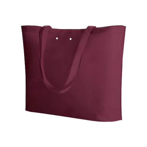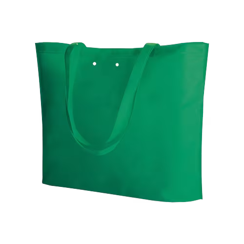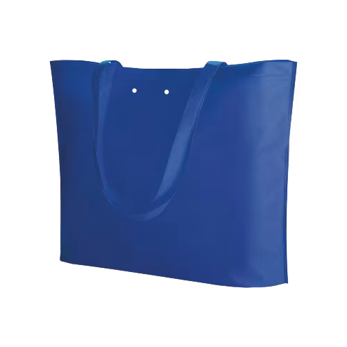 Borsa shopping in TNT con soffietto, manici lunghi, fori per nastro, rifiniture termosaldate.