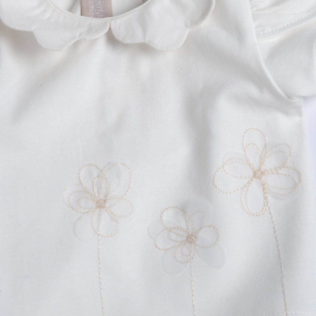 Ricamo margherite con applicazione petali in organza