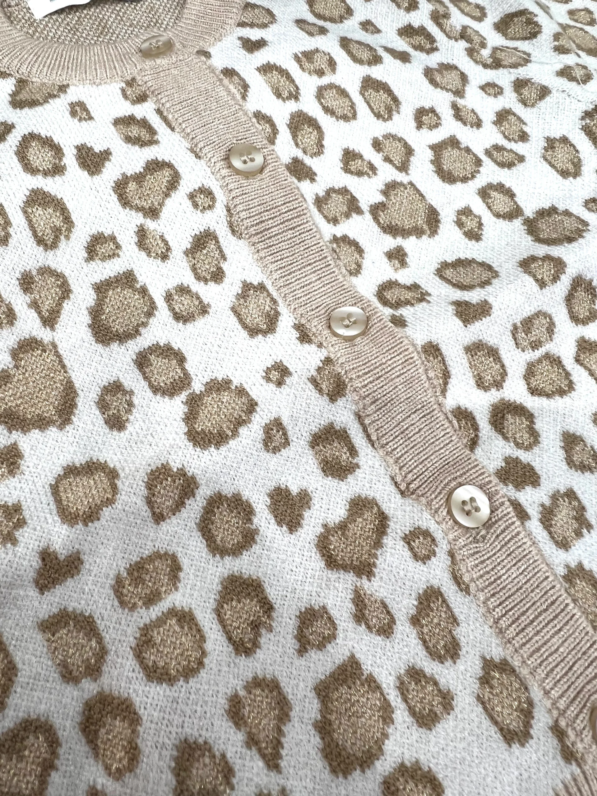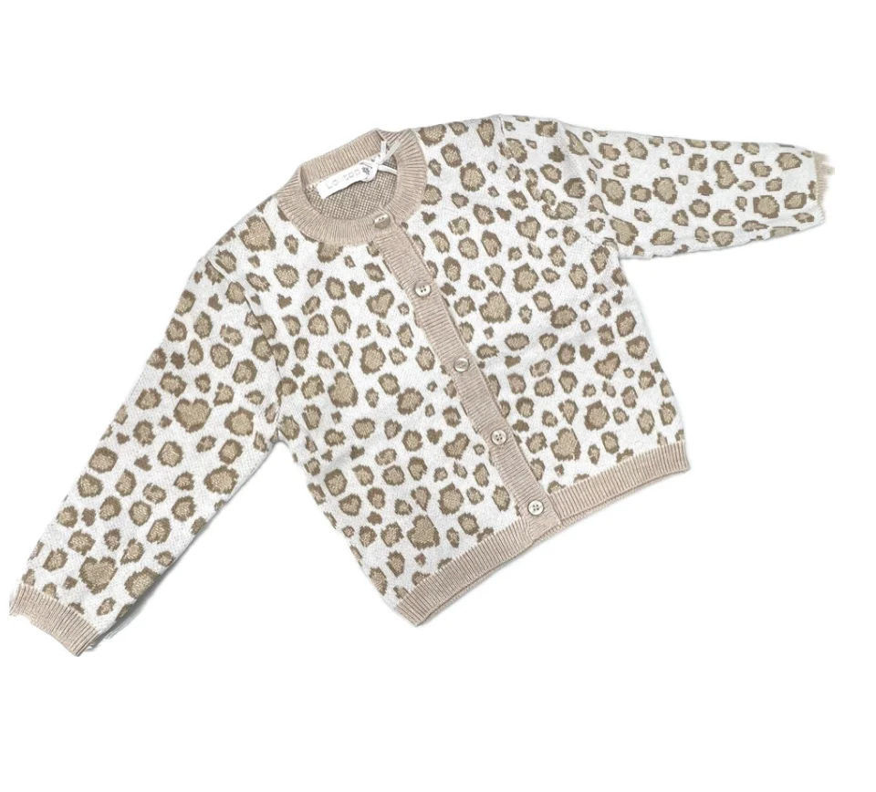 Questo cardigan per neonata, realizzato in lana pregiata con motivo animalier impreziosito da fili di lurex, unisce calore e stile sofisticato. Perfetto per mantenere la piccola avvolta in morbidezza durante le giornate più fresche, aggiunge un tocco di eleganza discreta grazie all’effetto luminoso del lurex, senza rinunciare al comfort e alla traspirabilità tipici della lana naturale. Adatto sia per occasioni casual che per momenti più speciali, è un capo versatile e raffinato nel guardaroba della tua bambina.