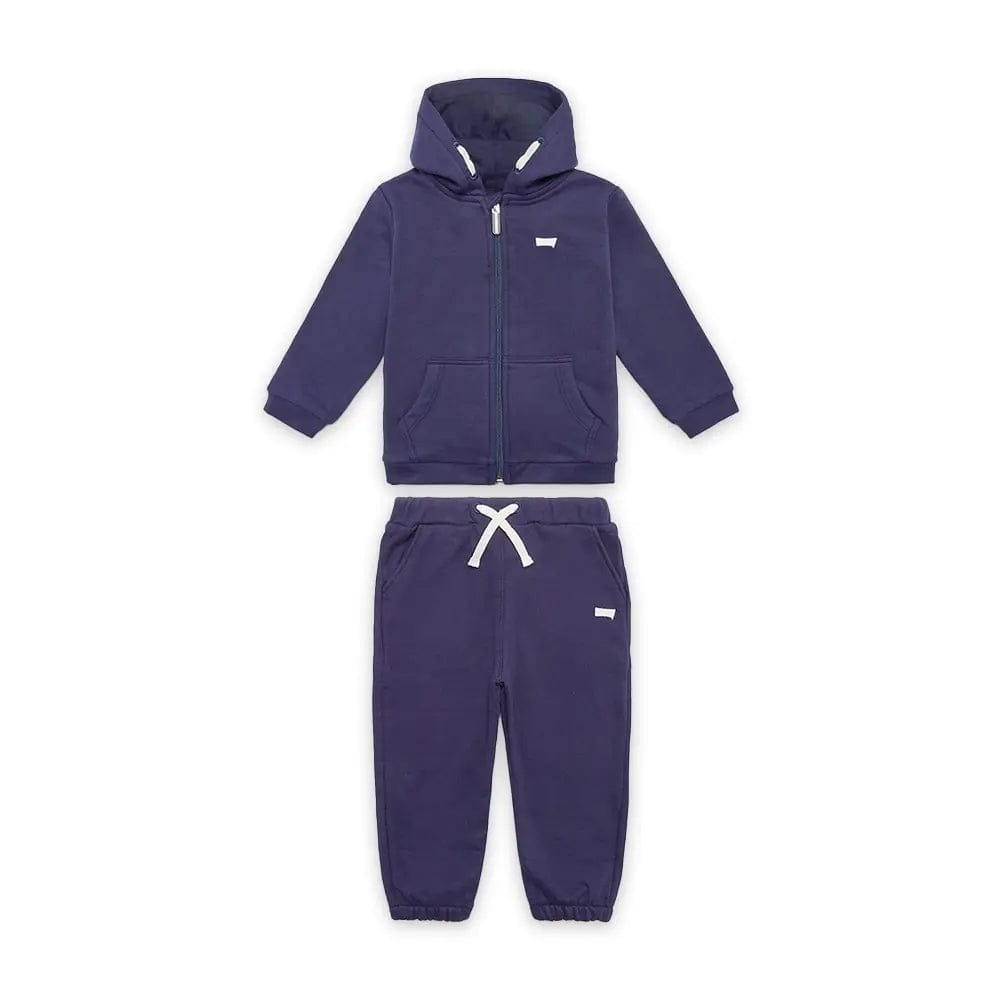 Tuta due pezzi in cotone felpato per bambini di colore blu.