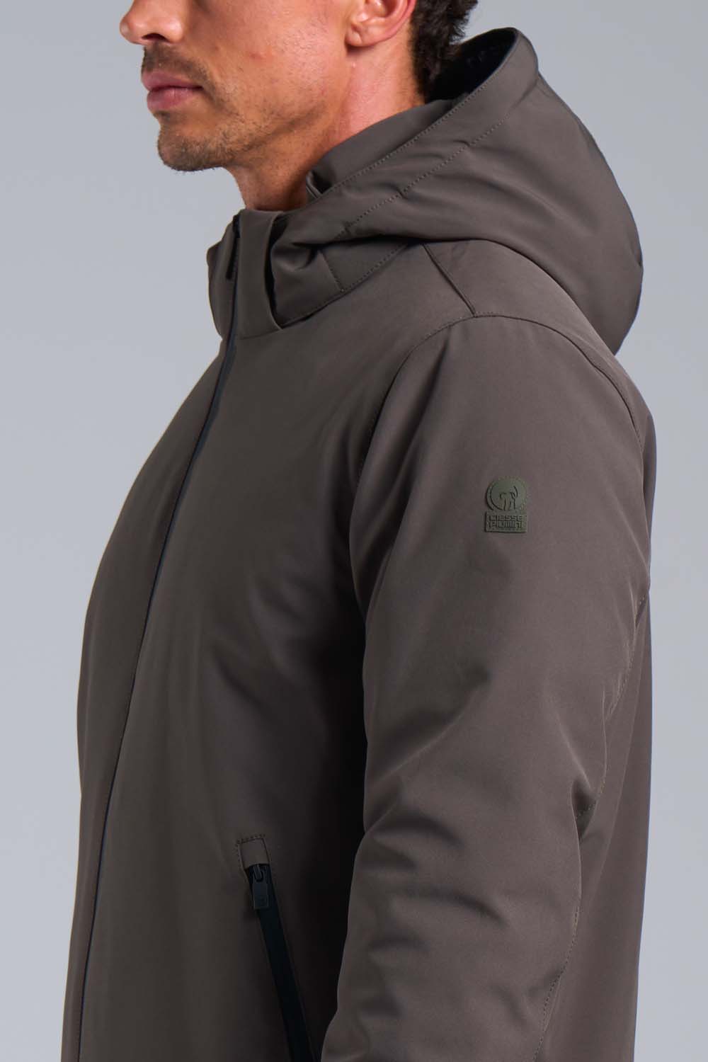 Giacca lunga da uomo in colore verde militare realizzata in tessuto softshell 3 layers con laminazione dry-tech ed imbottita in vera piuma 90/10. Lโimbottitura in vera piuma garantisce performance termiche, funzionalitร ed allo stesso tempo leggerezza. Il tessuto softshell รจ resistente allโacqua ed alle condizioni climatiche avverse, garantendo traspirabilitร ed impermeabilitร . DETTAGLI: โ vestibilitร regular โ chiusura con zip waterproof black โ coulisse di regolazione al cappuccio e fondo โ puller logati neri โ tasca interna al petto โ logo rubber in tono sulla manica โ tessuto 10k 10k COMPOSIZIONE: โ Tessuto esterno: 94% Poliestere 6% Elastan โ Tessuto…