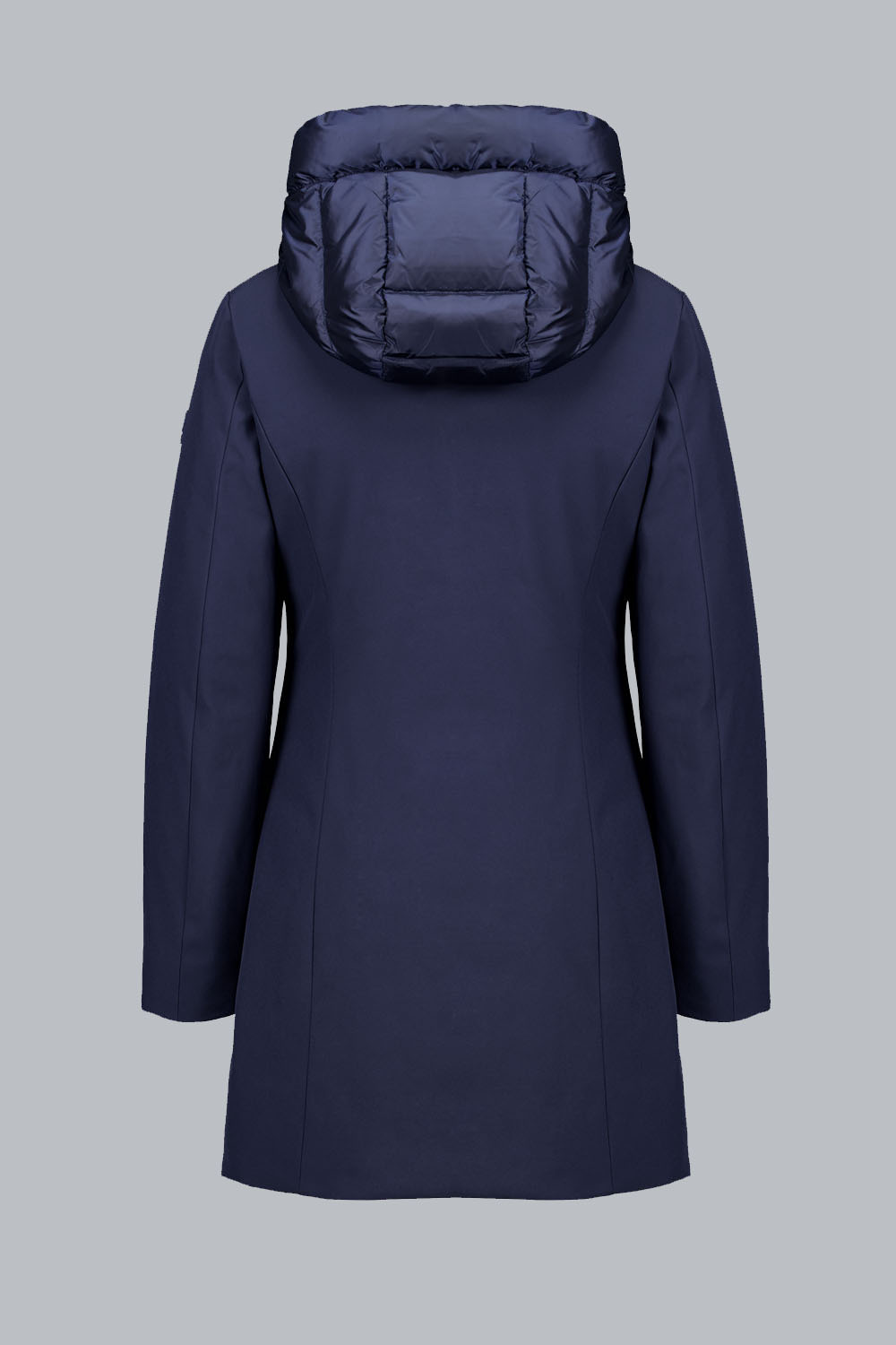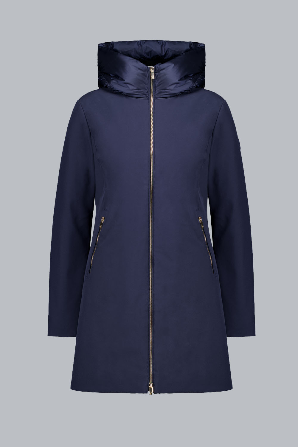 Giacca lunga verde in softshell con cappuccio 800 fill power Giacca lunga verde da donna realizzata in tessuto softshell 3 layers con laminazione dry-tech ed imbottita in vera piuma 90/10. Il cappuccio realizzato in tessuto nylon cal effetto lucido e la zip oro donano al capo un aspetto femminile, elegante e confortevole. Lโimbottitura in vera piuma garantisce performance termiche, funzionalitร ed allo stesso tempo leggerezza. Il tessuto softshell รจ resistente allโacqua ed alle condizioni climatiche avverse, garantendo traspirabilitร ed impermeabilitร . DETTAGLI: โ slim fit โ interno giacca trapuntato in tessuto nylon cal โ puller logati โ zip oro โ tasche…