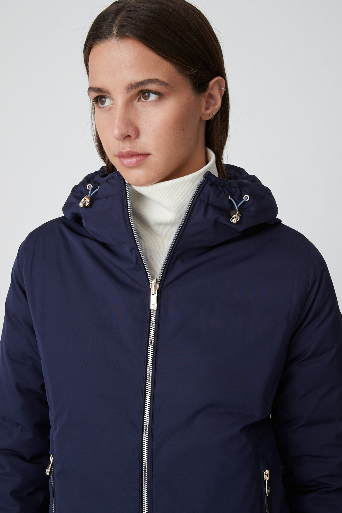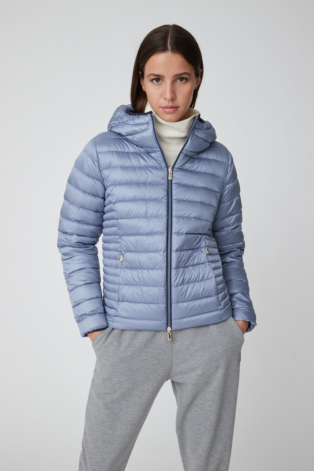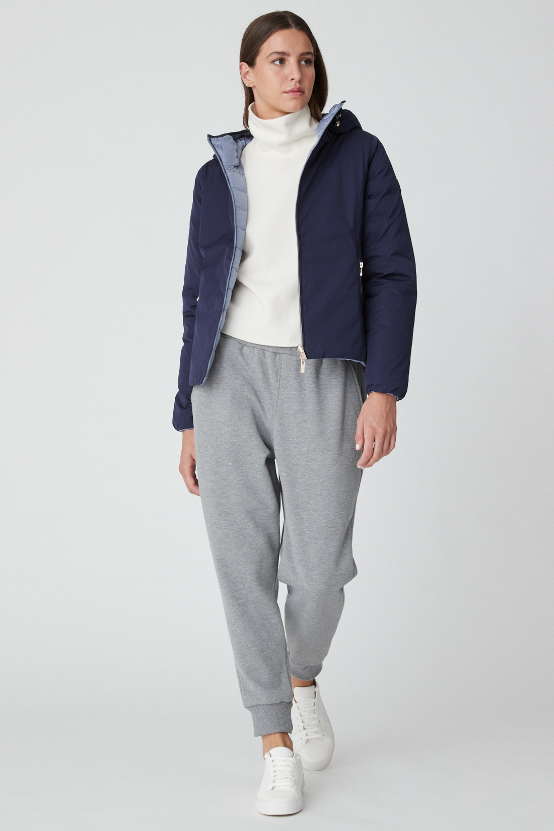 Piumino donna corto reversibile imbottito in vera piuma certificata 800 fill power