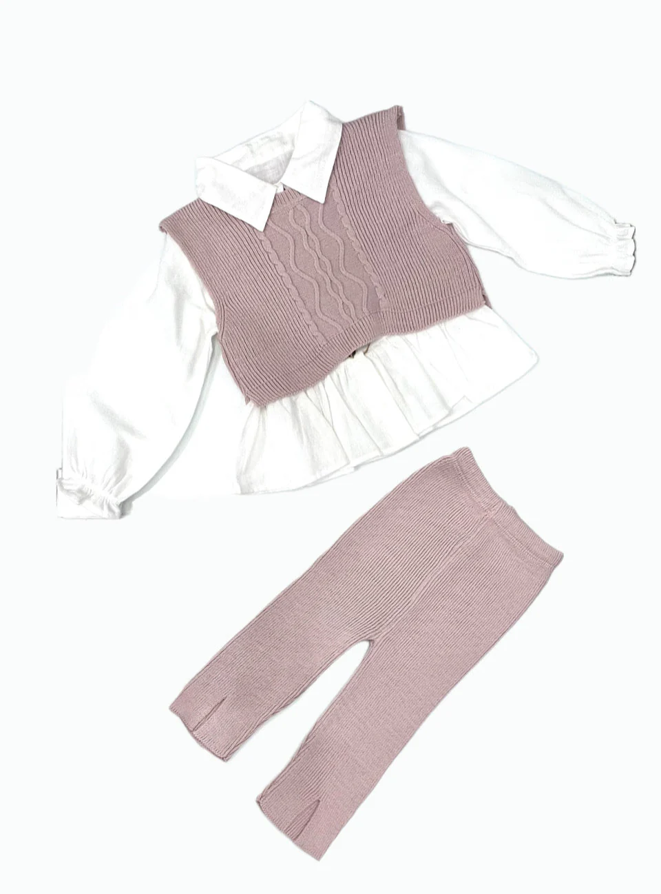 Questo completo in lana a tre pezzi per neonata include gilet, camicia e pantalone, ideale per garantire comfort e calore durante la stagione fredda. Realizzato con materiali di alta qualità, offre una vestibilità morbida e delicata sulla pelle delicata della bambina, assicurando libertà di movimento e stile raffinato. Perfetto per occasioni speciali o per un outfit elegante e confortevole da tutti i giorni.