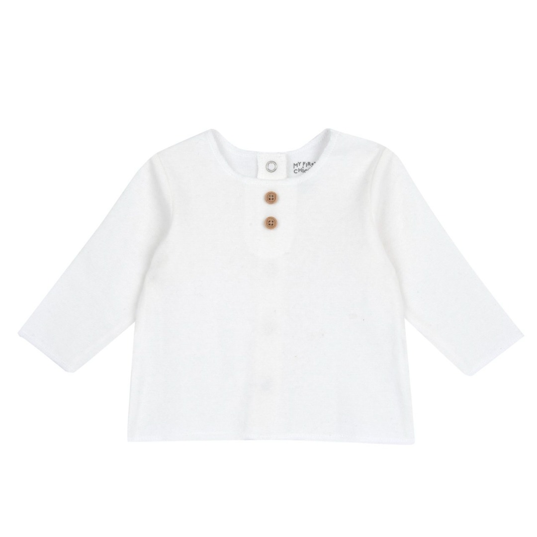 COMPLETO MAGLIA M/L B.CA CON SALOPETTE BEIGE CON ORSETTI – Chicco