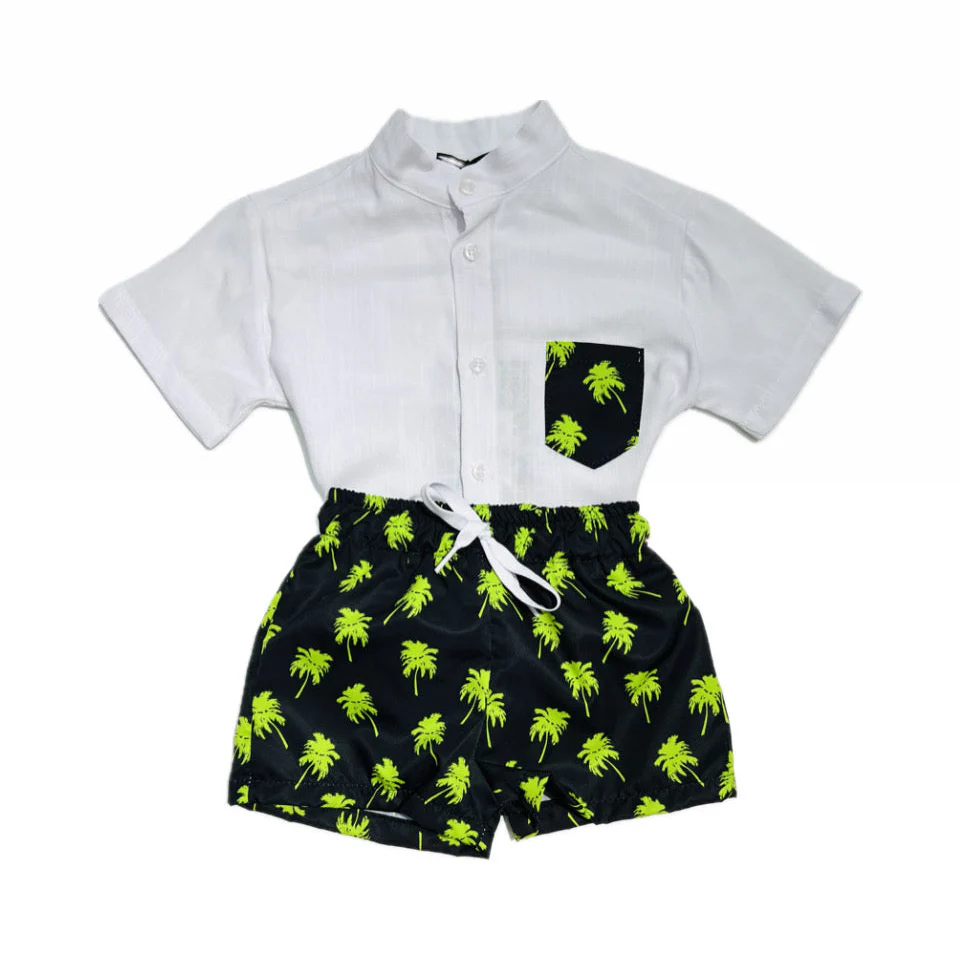 Coordinato Neonato Camicia in Cotone e Costume Mare