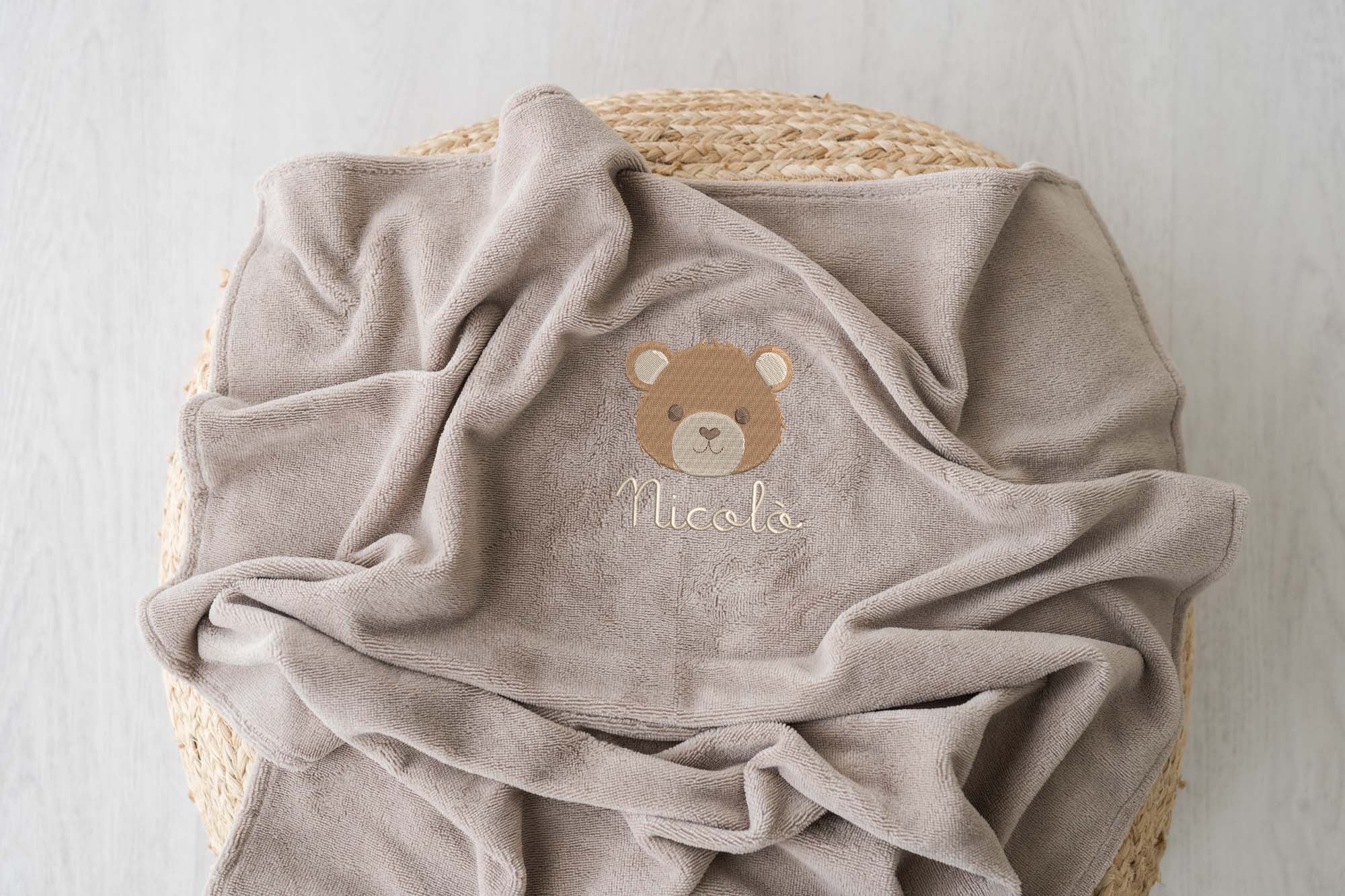Questa copertina nasce interamente nel nostro laboratorio: creata da zero dalla nostra sarta interna e ricamata con amore, รจ un piccolo capolavoro di qualitร  e artigianalitร  italiana.