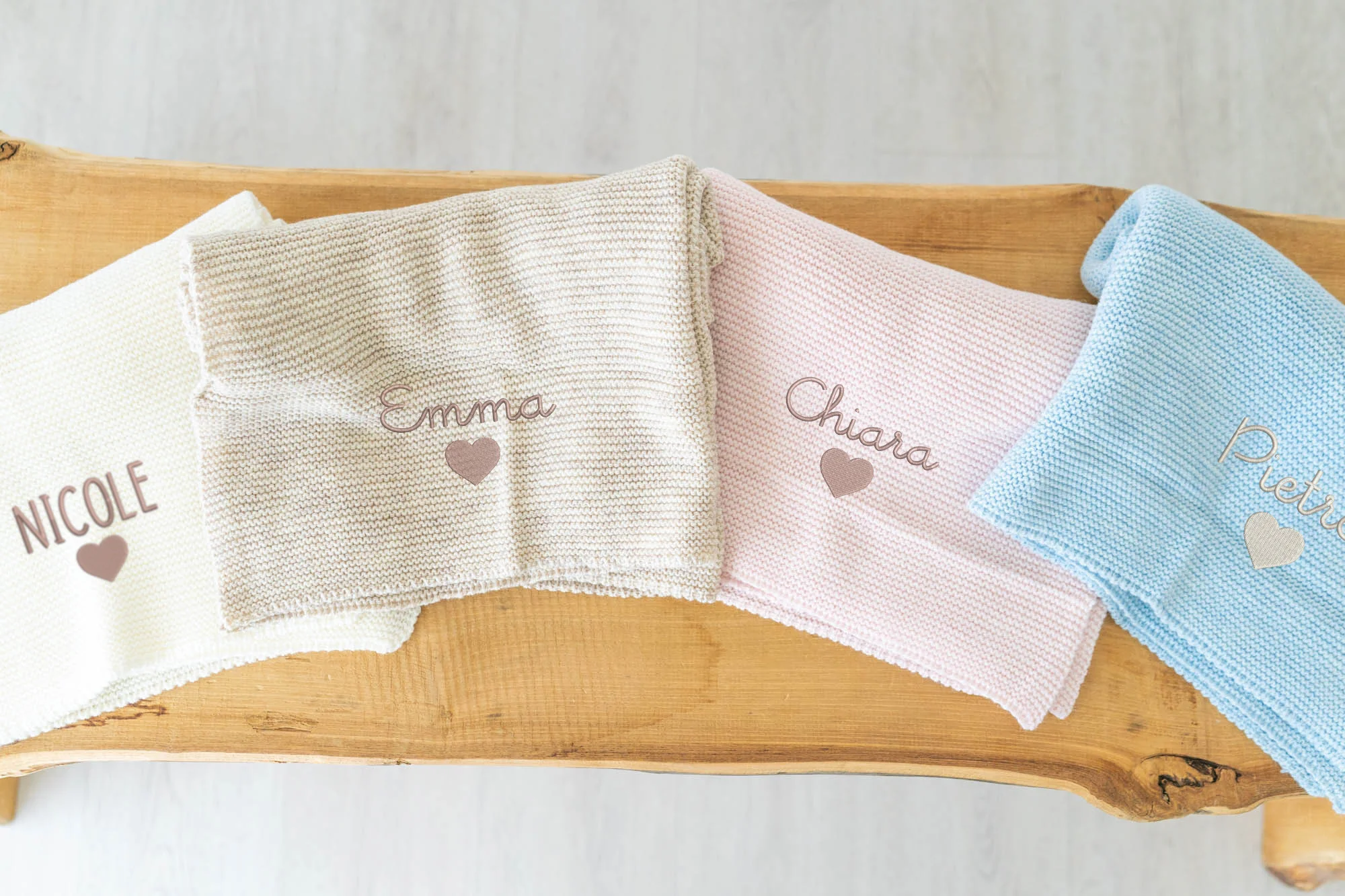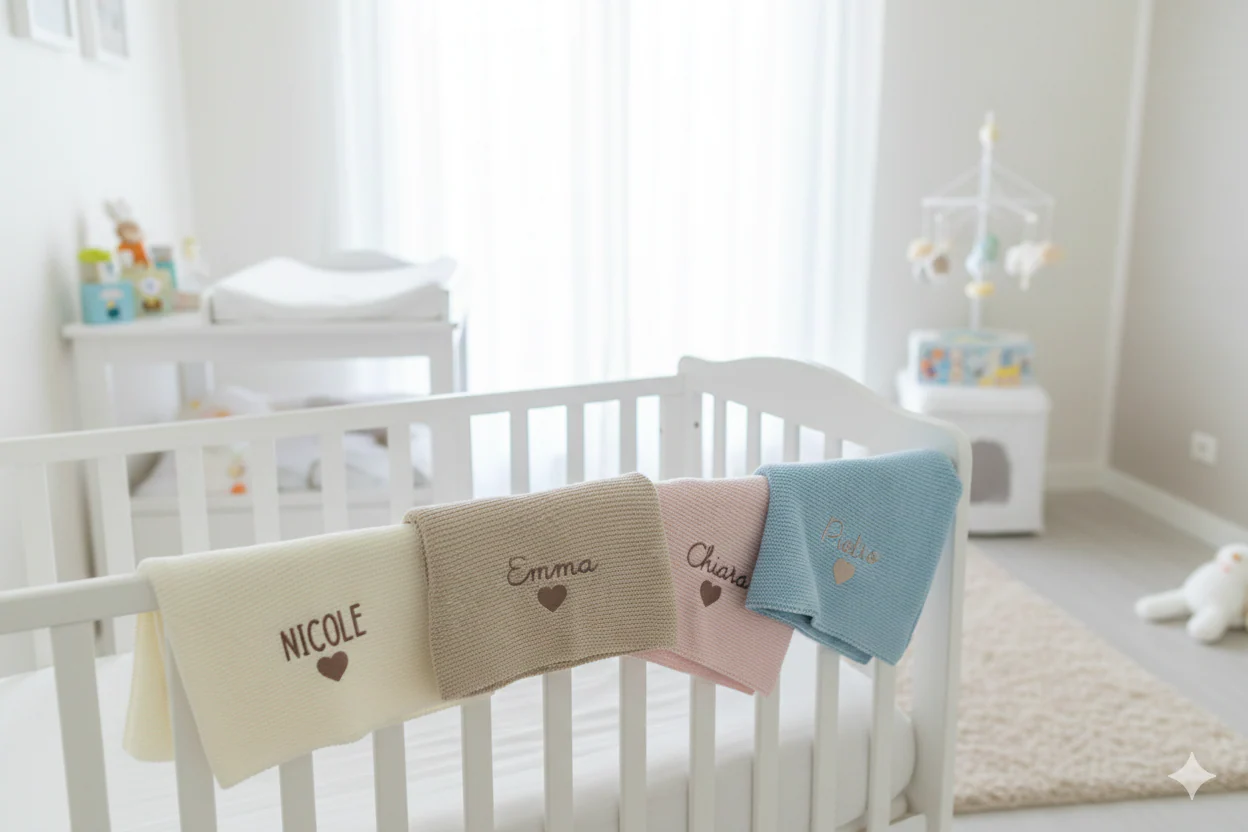 ARTICOLO RICAMATO Copertina in misto lana personalizzata โ Morbida, calda, unica. Perfetta per culletta, navicella o per accompagnare le passeggiate autunnali e invernali, questa copertina in misto lana รจ pensata per avvolgere il tuo bambino in un abbraccio caldo e confortevole. Il tocco speciale? La personalizzazione a ricamo con il nome, che la rende un […]