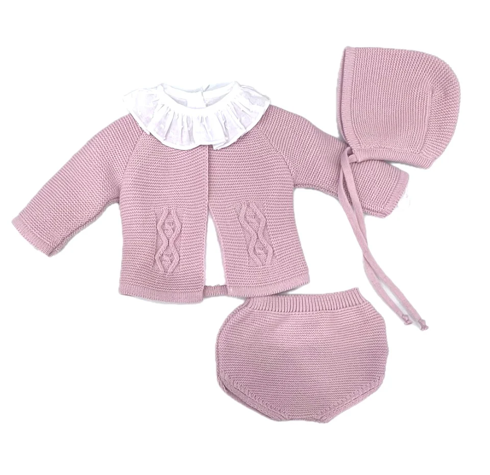 CORALO Completo invernale quattro pezzi, appositamente studiato per i neonati durante i mesi più freddi. Questo set include tutti gli elementi essenziali per mantenere il vostro piccolo caldo e confortevole: camicia ,golfino, coulotte, cuffietta coordinate. Il tessuto morbido e traspirante protegge la pelle delicata del neonato, mentre il design pratico facilita i cambi frequenti. Perfetto come regalo o per costruire un guardaroba invernale completo e coordinato.