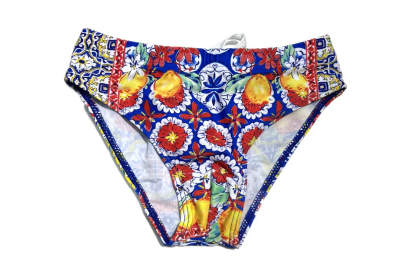 Costume slip bambino con esclusiva fantasia maiolica, realizzato con tessuto tecnico che mantiene la forma anche dopo ripetuti utilizzi. La composizione con elastan assicura comfort e libertà di movimento, mentre i pigmenti di alta qualità preservano la vivacità dei colori nonostante l’esposizione a cloro e sole. Ideale per giovani nuotatori che non rinunciano allo stile.
