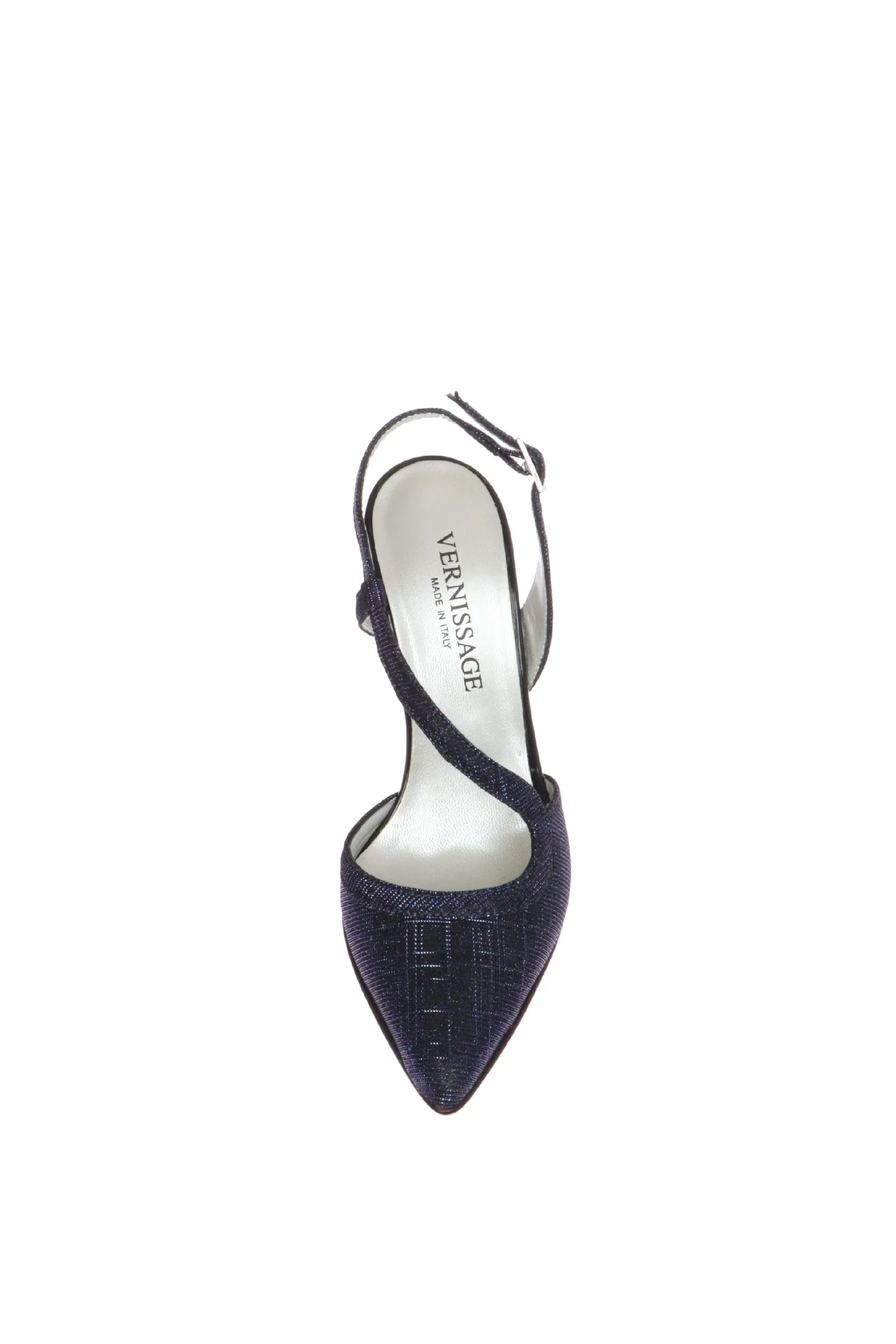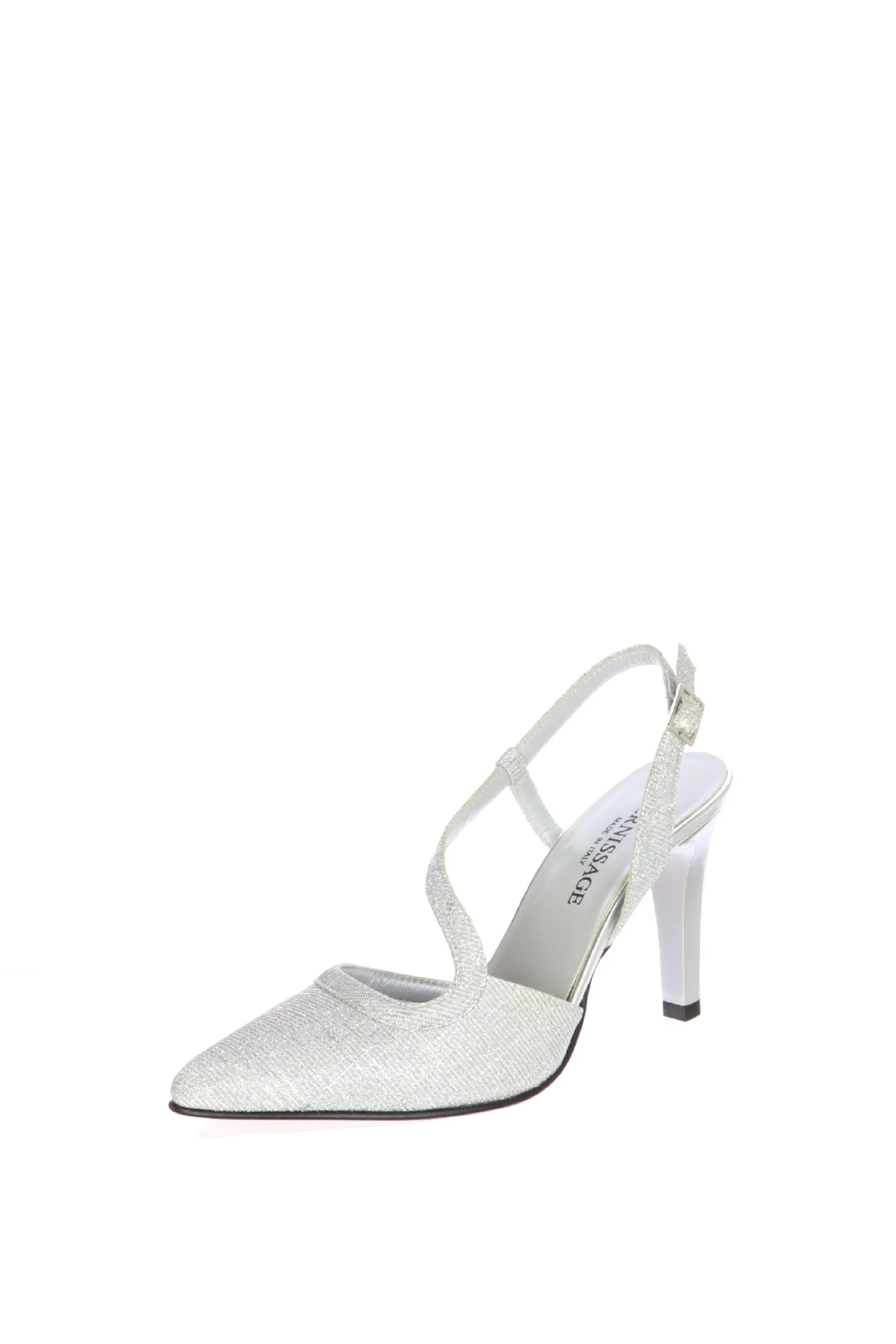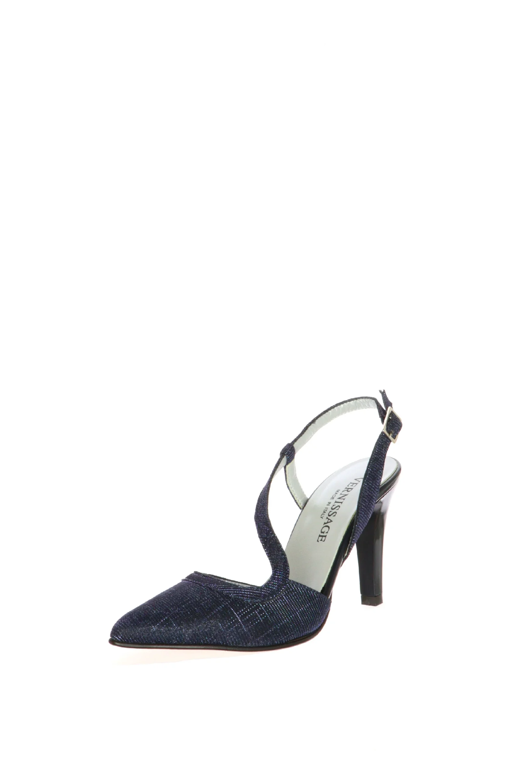 Decolletè elegante cerimonia in morbido tessuto glitter, luminoso e glamour. Un modello che abbraccia bene il piede, la fascetta trasversale è delicata sul dorso del piede, è regolabile, fa sentire la scarpa più ferma al piede e slancia la figura. Per i tuoi eventi più importanti sceglie Vernissage by Soffice Sogno, il comfort che non ti aspetti! Qualità artigianale made in Italy