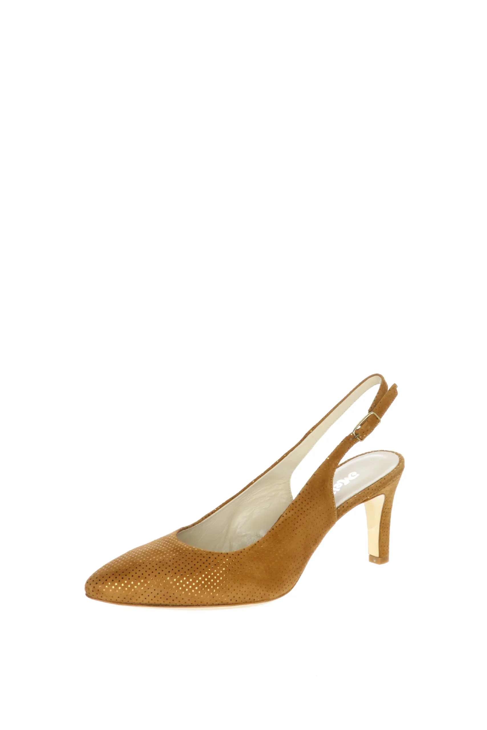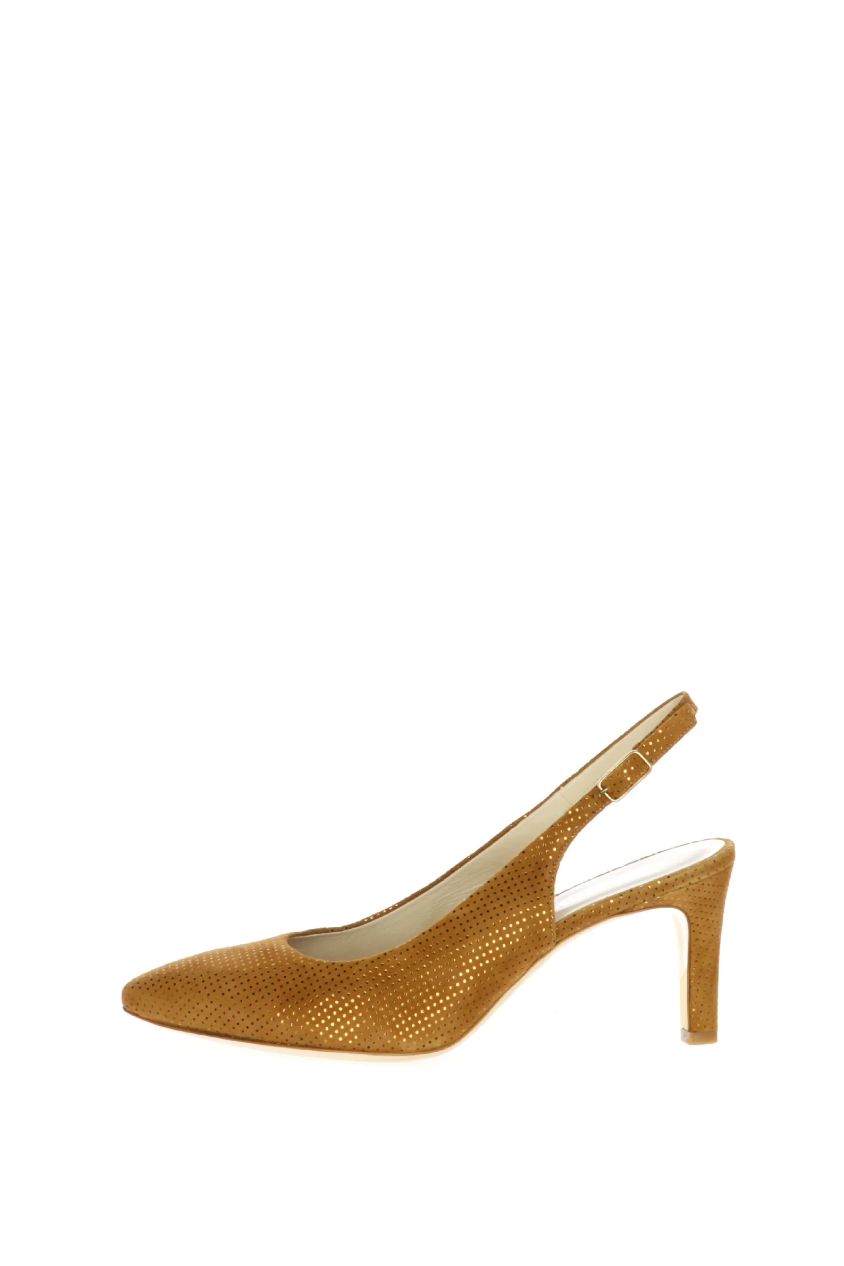 Decolletè a punta in camoscio puntinato con tacco medio.Melluso Dettagli prodotto: – Tomaia in vero camoscio – Sottopiede imbottito in vera pelle – Fondo in cuoio – Cinturino regolabile – Tacco 70 mm – Made in Italy