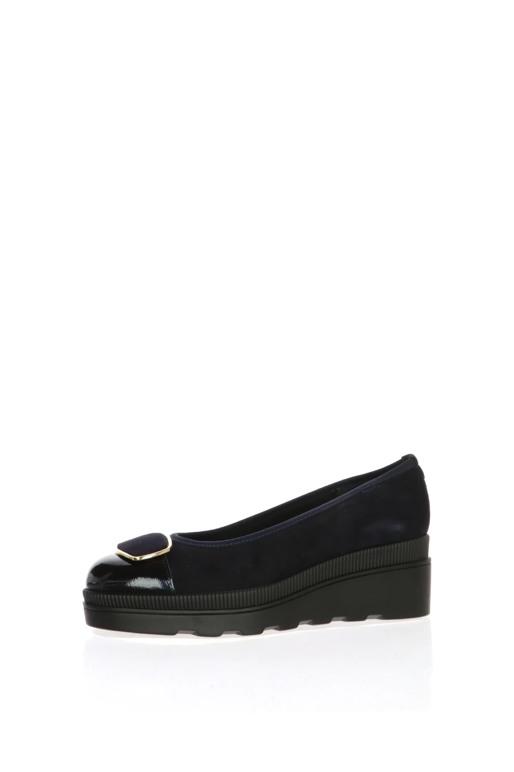 Decolletè in camoscio blu e nera con zeppa Soffice Sogno