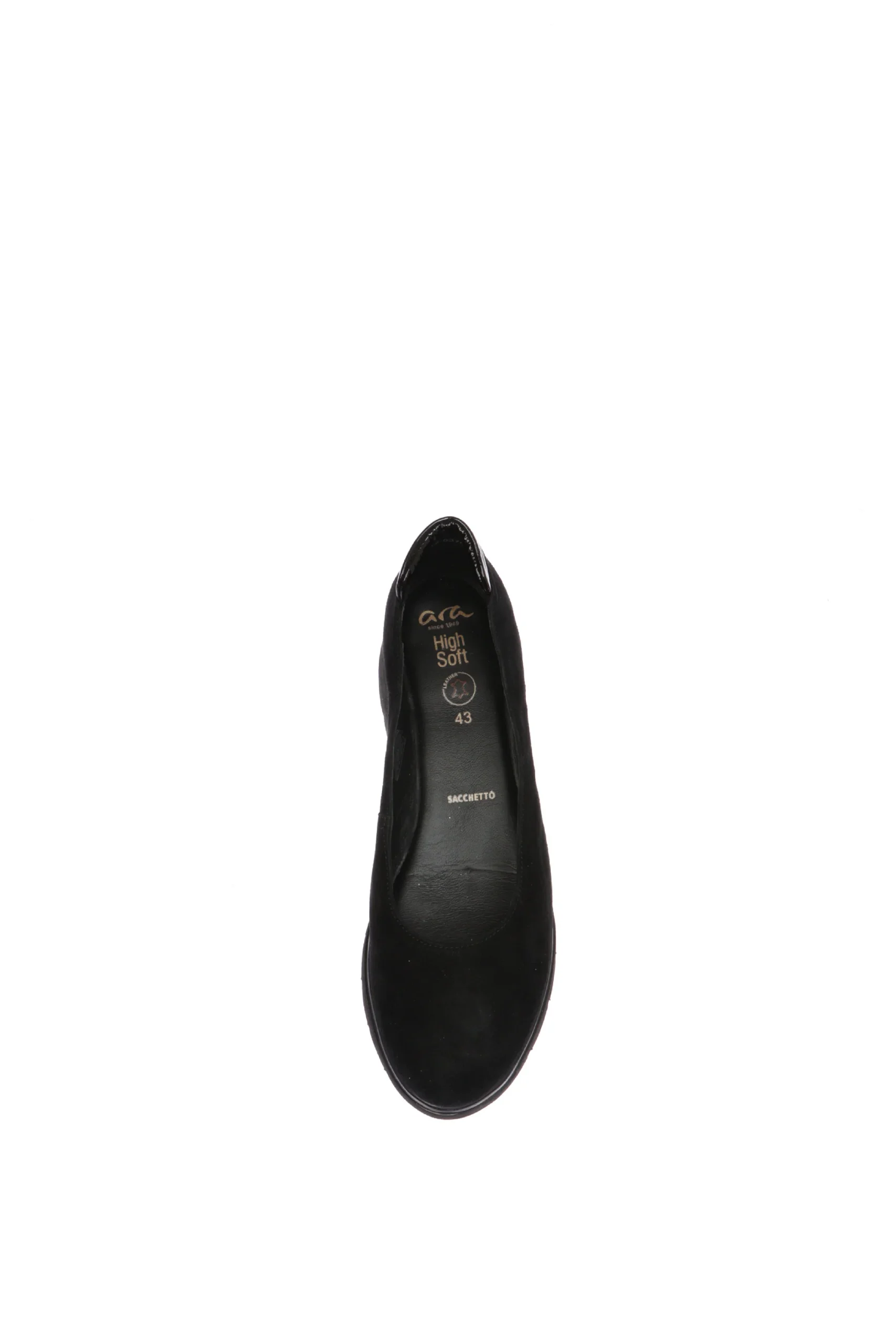Decolletè in camoscio, comodo e morbido, lavorazione a sacchetto. Un modello semplice e versatile, ideale per tutti i giorni. Pianta larga, sottopiede soft, si adatta molto facilmente al piede. Disponibile nei numeri grandi donna 42 e 43. Ara shoes