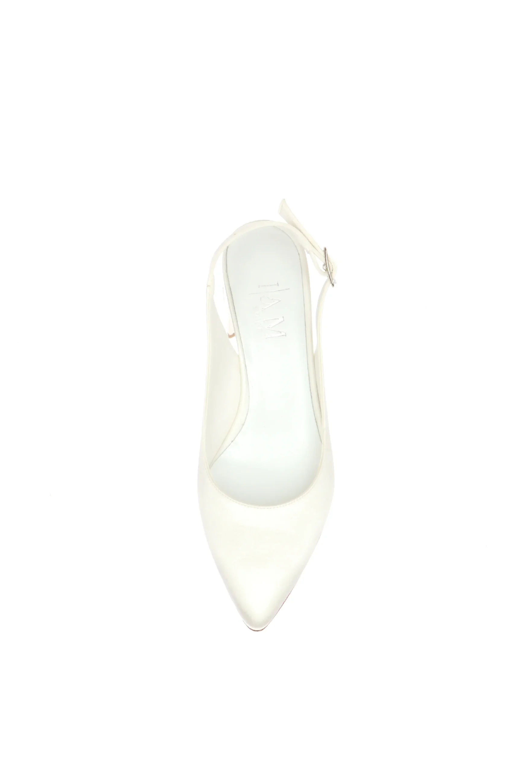 Decolletè sposa aperto al tallone, in pregiato raso bianco seta. Semplice, fine ed elegante, ideale per abiti romantici e molto ricchi di perline e lustrini. Ideale per tutte le stagioni, questa scarpa abbraccia il piede. Per il tuo giorno più importanti scegli di calzare Joel. Qualità artigianale made in Italy