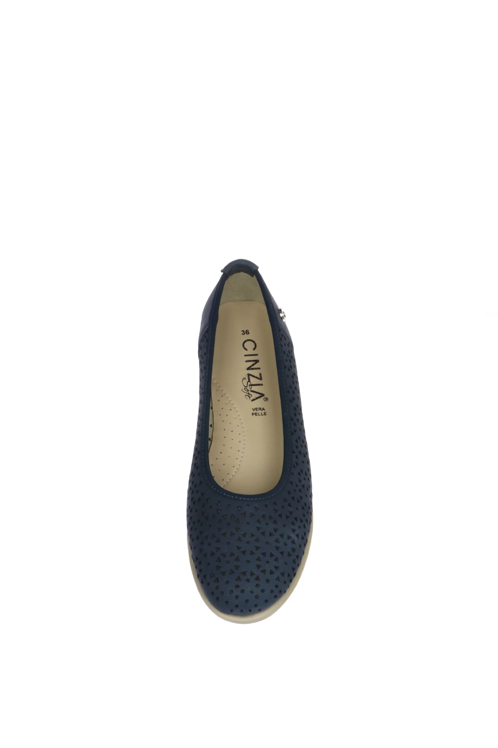Tomaia in Pelle Blu Navy: La tomaia in pelle blu navy è non solo elegante ma anche traspirante grazie al motivo a fori.