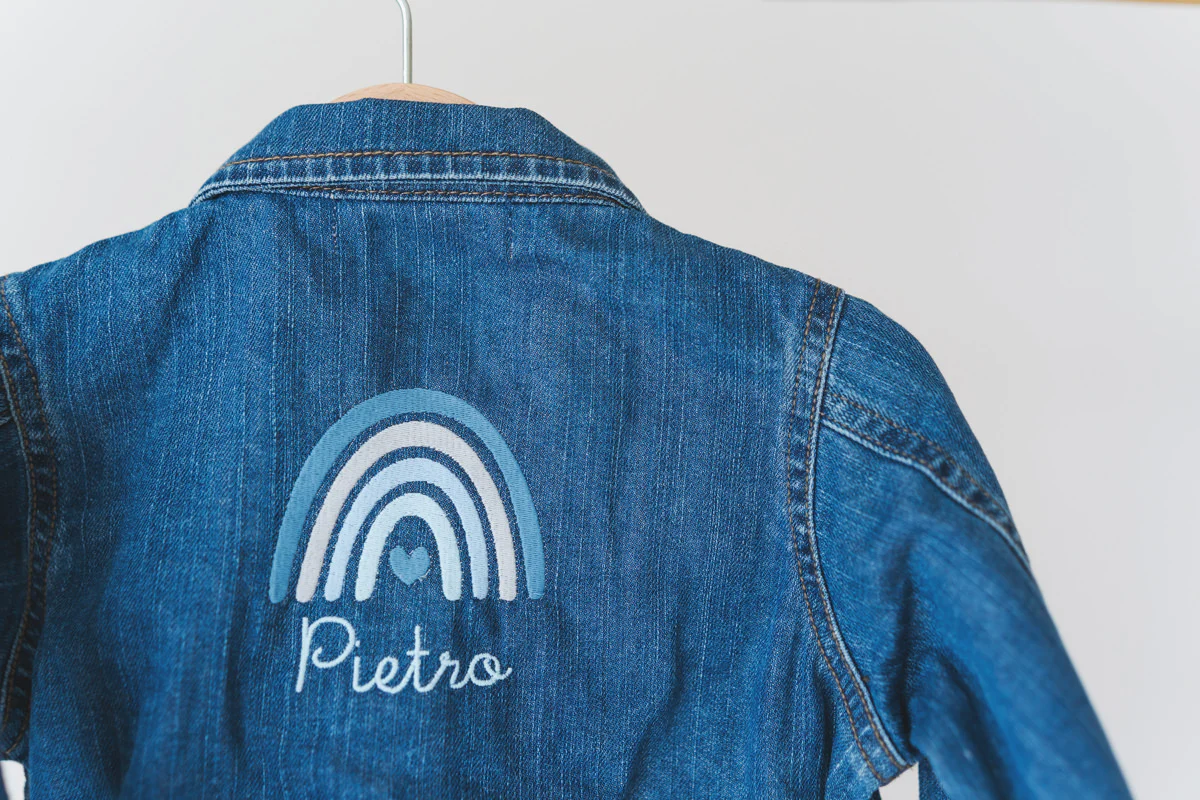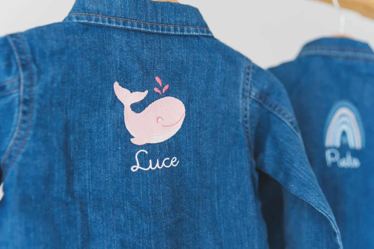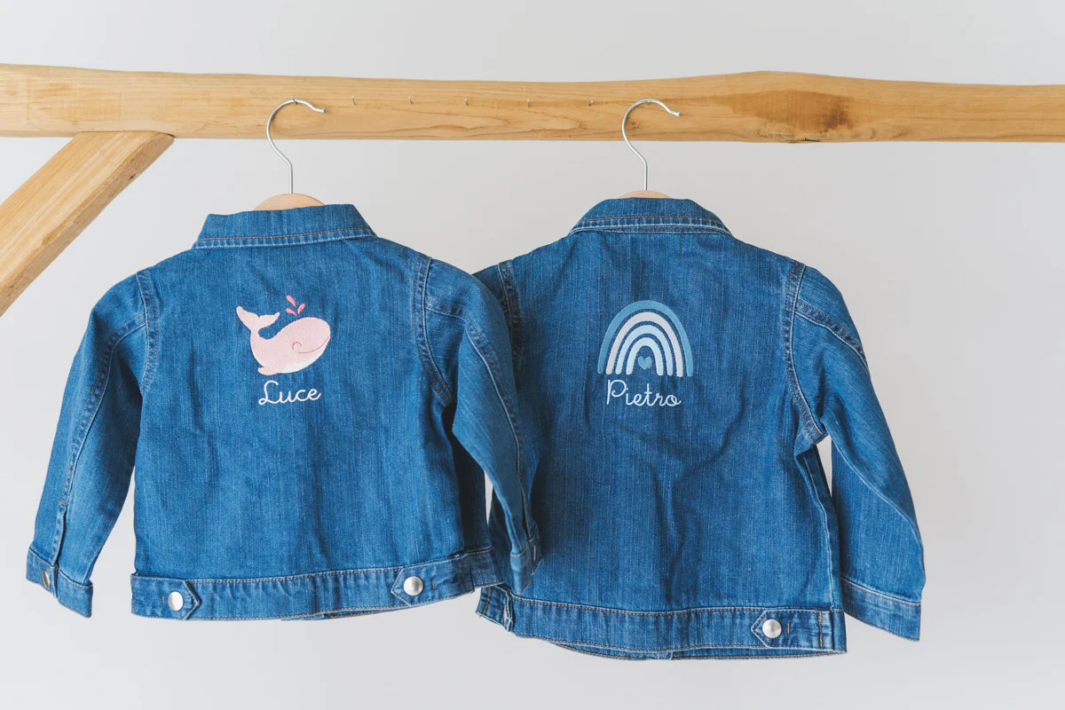 Il ricamo e la personalizzazione dell’animaletto e del nome del vostro bimbo rendono questa giacca di jeans, 100% in cotone organico, un prodotto originale e unico che non puรฒ mancare nell’armadio dei vostri piccoli.