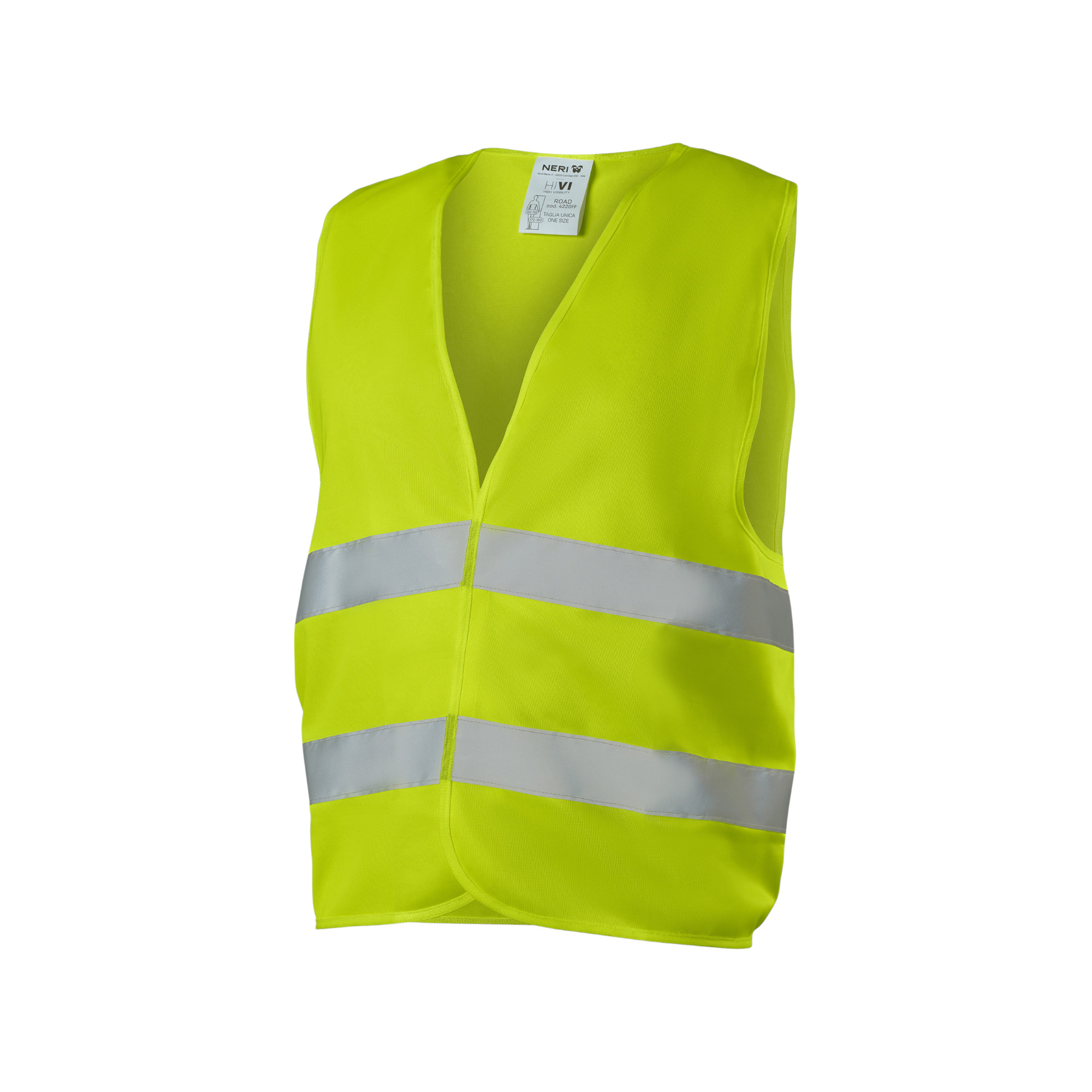 Gilet hv Road Giallo Peso tessuto: 120 g/m2 Chiusura frontale a strappo regolabile 2 bande retroriflettenti orizzontali che avvolgono completamente l’addome Taglia unica Colore: giallo