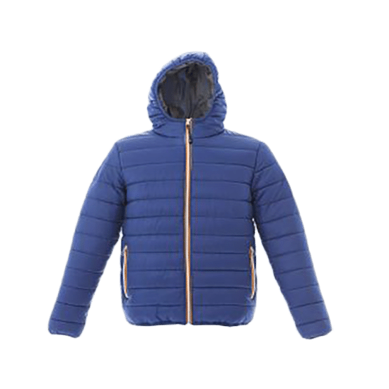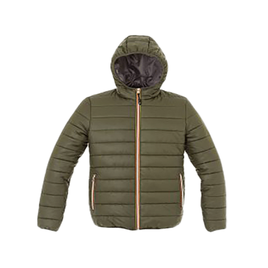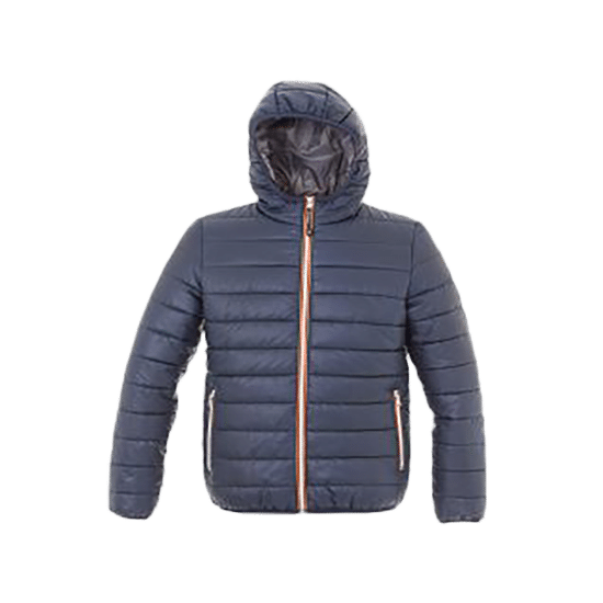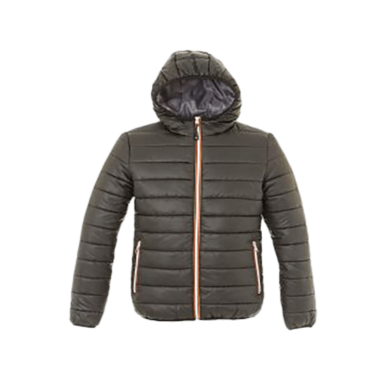 Giubbino in nylon morbido, lucido e impermeabile – Fodera morbida in polyester 300T – Imbottitura in soffice polyestere (effetto piuma) – Cerniera Gialla/Rossa/Nera – Cappuccio imbottito – Due tasche con zip – Tasca interna portafoglio – Tessuto elastico nel fondo e ai polsini