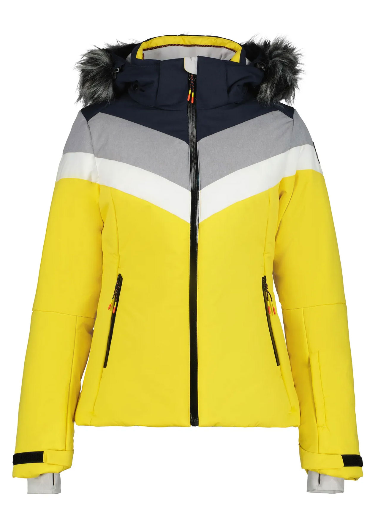 ICEPEAK – COMPLETO SCI DONNA Electra Giallo, pantalone blu, cappuccio con pelliccia