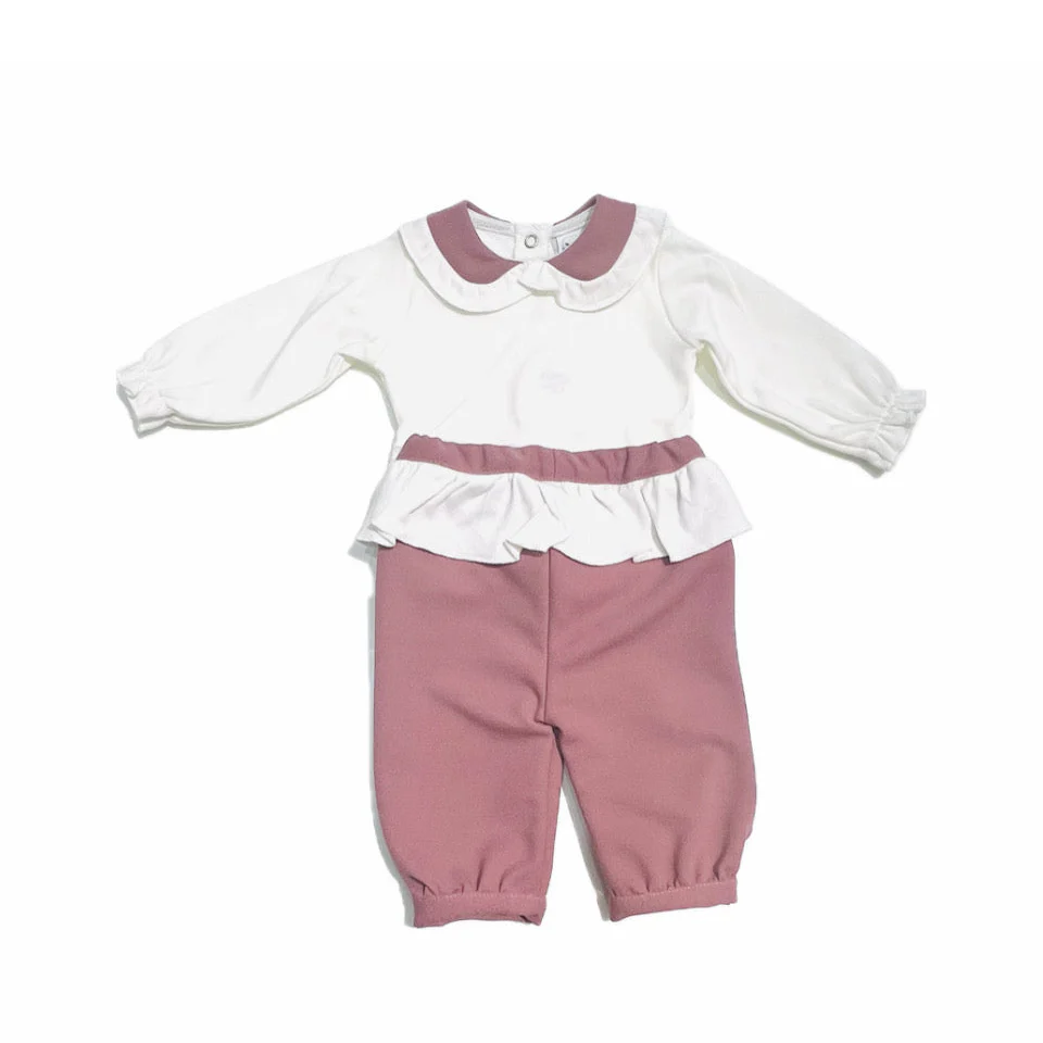 Il Corredino Tutina Due Pezzi in Caldo Cotone con Rouches