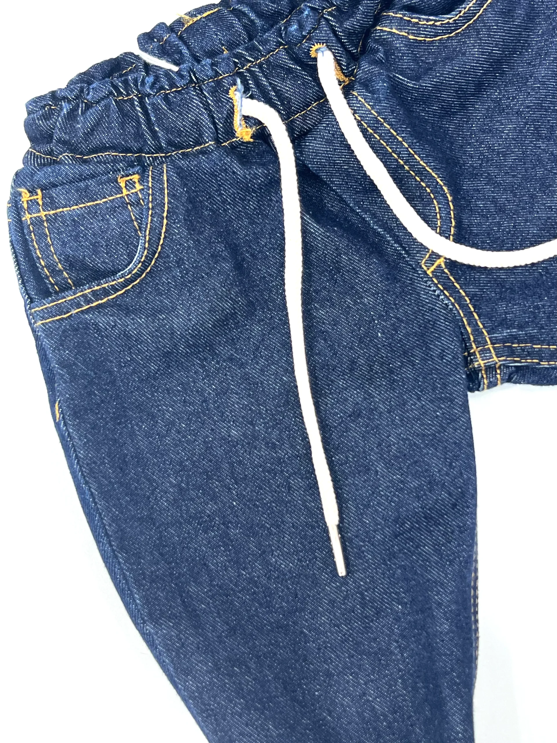 Questi jeans denim per neonato sono progettati con un elastico in vita che garantisce comfort e vestibilità ottimale durante la crescita. Il tessuto resistente assicura durata, ideale per ogni occasione, Perfetti per un outfit sportivo o classico, un jeans che non deve mancare nell’armadio del piccolo.