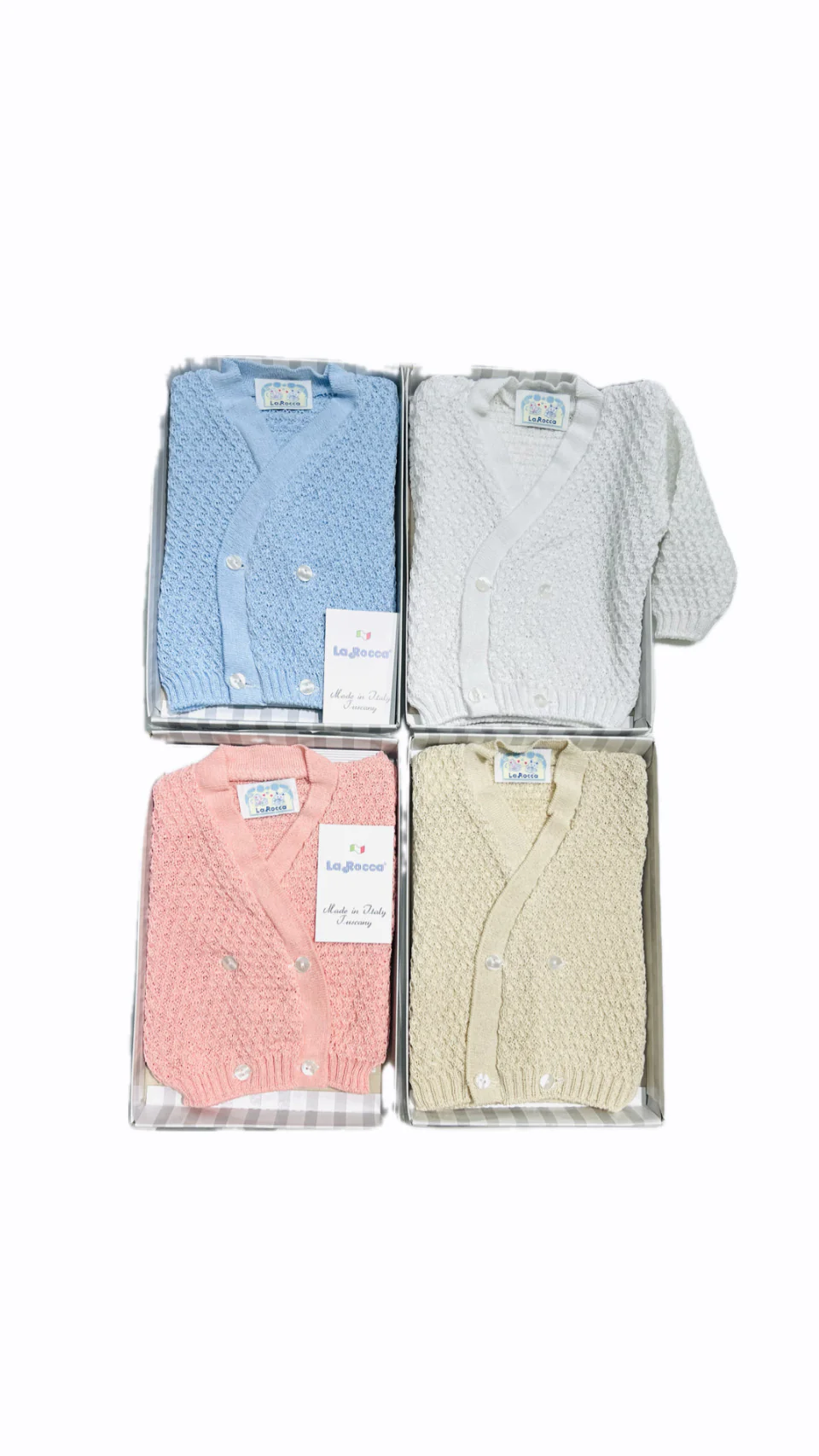 Esclusivo incrociatino in filo della La Rocca, ideale per i primi giorni del tuo piccolo. Realizzato con cura e attenzione per un comfort unico nel suo genere. Aggiungi un tocco di classe al corredino del tuo bambino con questo elegante capo.
