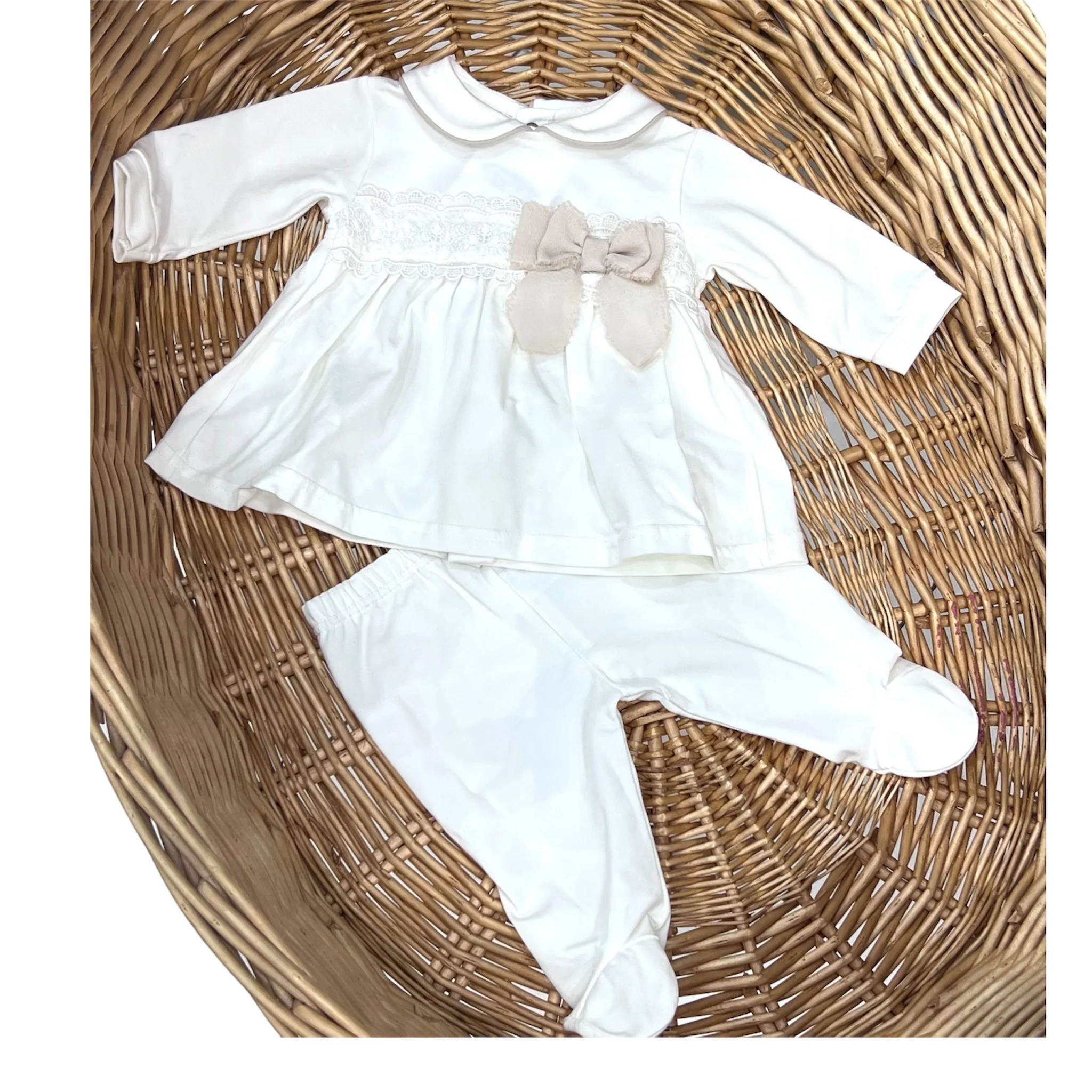 Le Chicche Tutina Due Pezzi in Cotone Bielastico con Fiocco e Macramè (Copia)