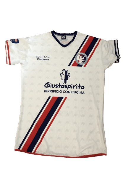 Maglia da calcio in tessuto elasticizzato a mezza manica. Tessuto di produzione italiana 96%poliestere-4%elasticizzato Taglio, stampa e confezione eseguiti presso i nostri laboratori per un prodotto totalmente MADE IN ITALY Scollo a V per un miglior confort Stampa eseguita su tutta la superficie del prodotto per un risultato unico e totalmente personalizzato