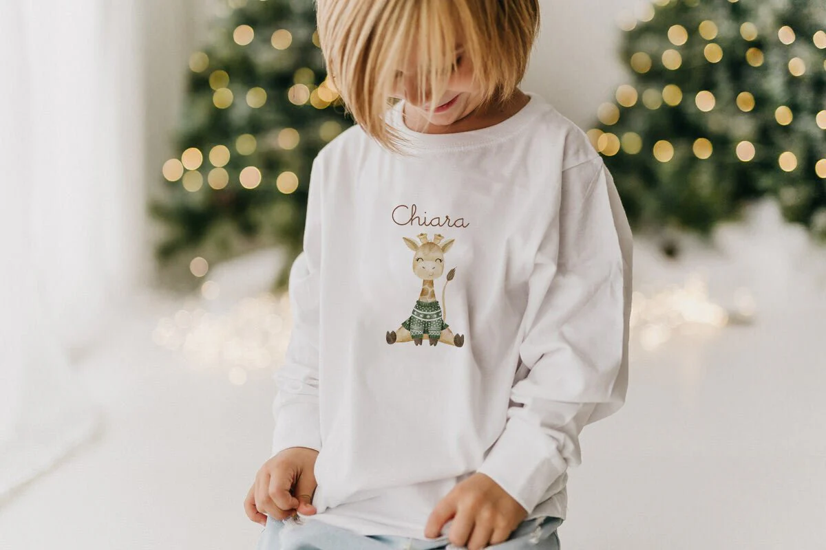 T-shirt manica lunga da bambino per il vostro Natale in famiglia, per un ricordo fotografico simpatico tutti insieme vicino all’albero per i pranzi nel periodo natalizio.