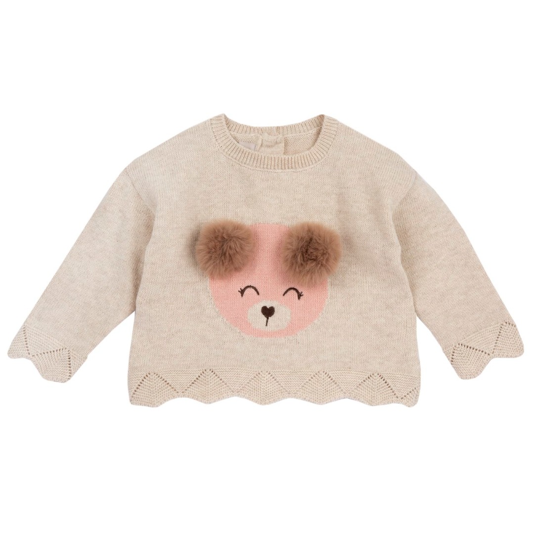 MAGLIONE BEIGE CON POMPON ORSETTO – Chicco