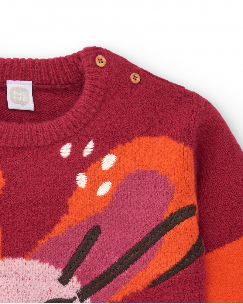 Maglione da bambina di colore rosso con fantasia smiley face che si distingue per il suo stile allegro e colorato.