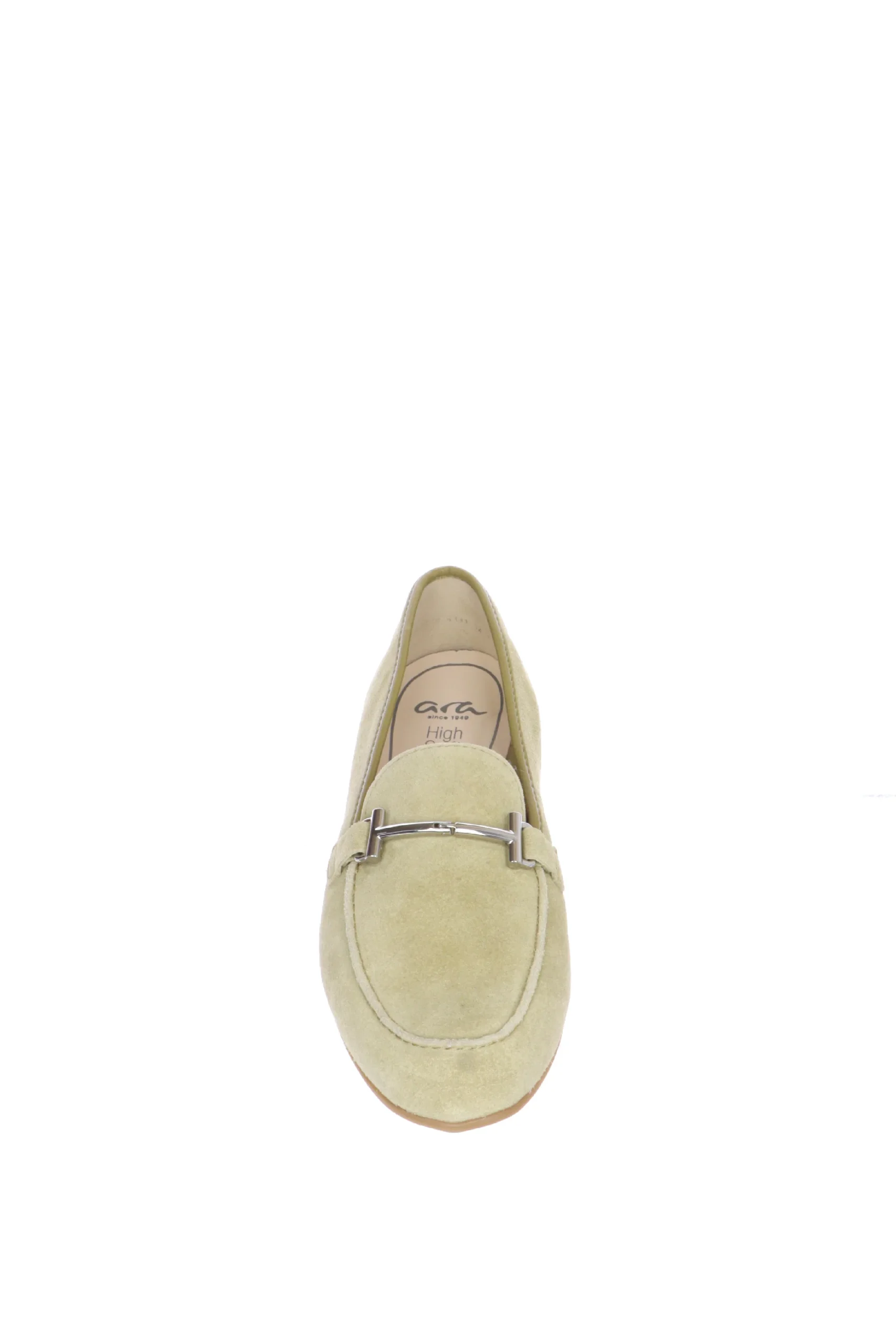 Mocassino primaverile in morbido camoscio sfoderato. Leggero, comodo, con sottopiede imbottito in vera pelle, รจ ideale per la mezza stagione, da indossare anche senza calze. Disponibile nei numeri grandi donna 42, 42,5 e 43. Ara shoes