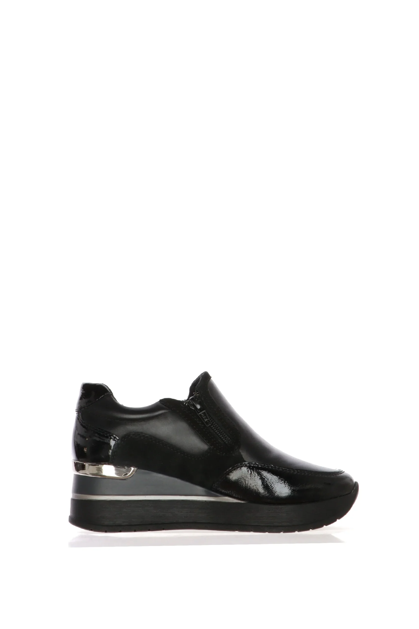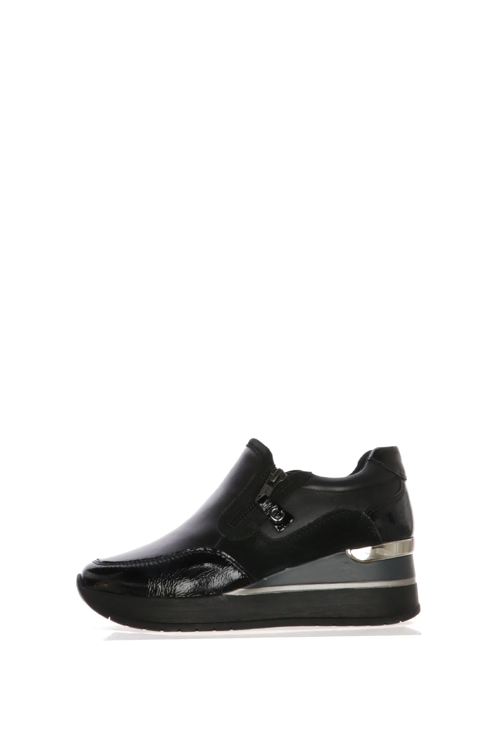 Mocassino Donna Cinzia Soft: Eleganza in Vernice NeraEleva il tuo stile con il mocassino donna Cinzia Soft, un classico intramontabile che si reinventa per la donna moderna. La sua finitura lucida in vernice nera e il design elegante lo rendono la calzatura ideale per ogni occasione, dall’ufficio all’uscita serale.Dettagli e Vantaggi:Design Distintivo: La tomaia in vernice nera dona un tocco sofisticato e accattivante, mentre il fiocco decorativo sul collo del piede aggiunge un dettaglio chic e femminile.Massimo Comfort: La suola a zeppa, ammortizzata e robusta, non solo slancia la figura, ma garantisce un’andatura stabile e leggera per tutta la giornata.Versatilitร : Perfetto da abbinare a pantaloni eleganti o jeans, questo mocassino รจ un passe-partout che unisce la praticitร di una scarpa casual con la raffinatezza di un modello piรน formale.Scegli l’eleganza e la qualitร del mocassino Cinzia Soft, un investimento di classe che non passerร mai di moda.