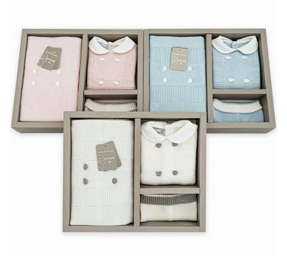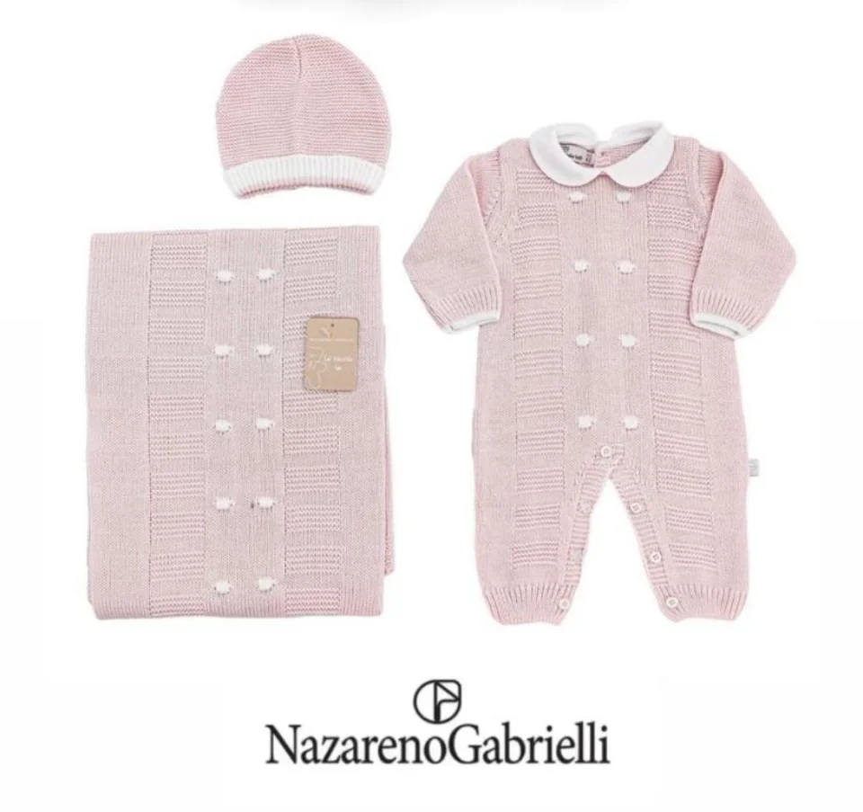 Il set nascita Nazareno Gabrielli in lana comprende tre pezzi essenziali: una tutina, un cappellino e uno scialle. Realizzato con lana di alta qualità, garantisce calore e comfort delicato sulla pelle sensibile del neonato. Questo set è ideale per proteggere il bambino durante i primi mesi, offrendo morbidezza e traspirabilità naturali. Un capo raffinato e funzionale, perfetto per accompagnare i primi giorni di vita con stile e cura esperta.