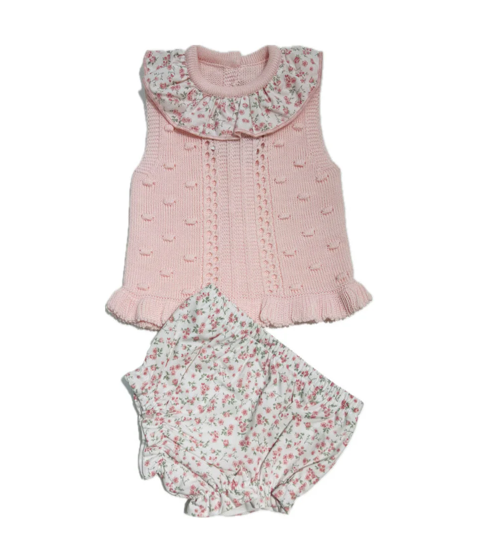 Espressione di stile e comfort per la neonata grazie a questo completo giro manica in filo con coulotte. Realizzato con tessuti di alta qualità, garantisce morbidezza e delicatezza sulla pelle sensibile del bambino. Perfetto per un look elegante e comodo allo stesso tempo.