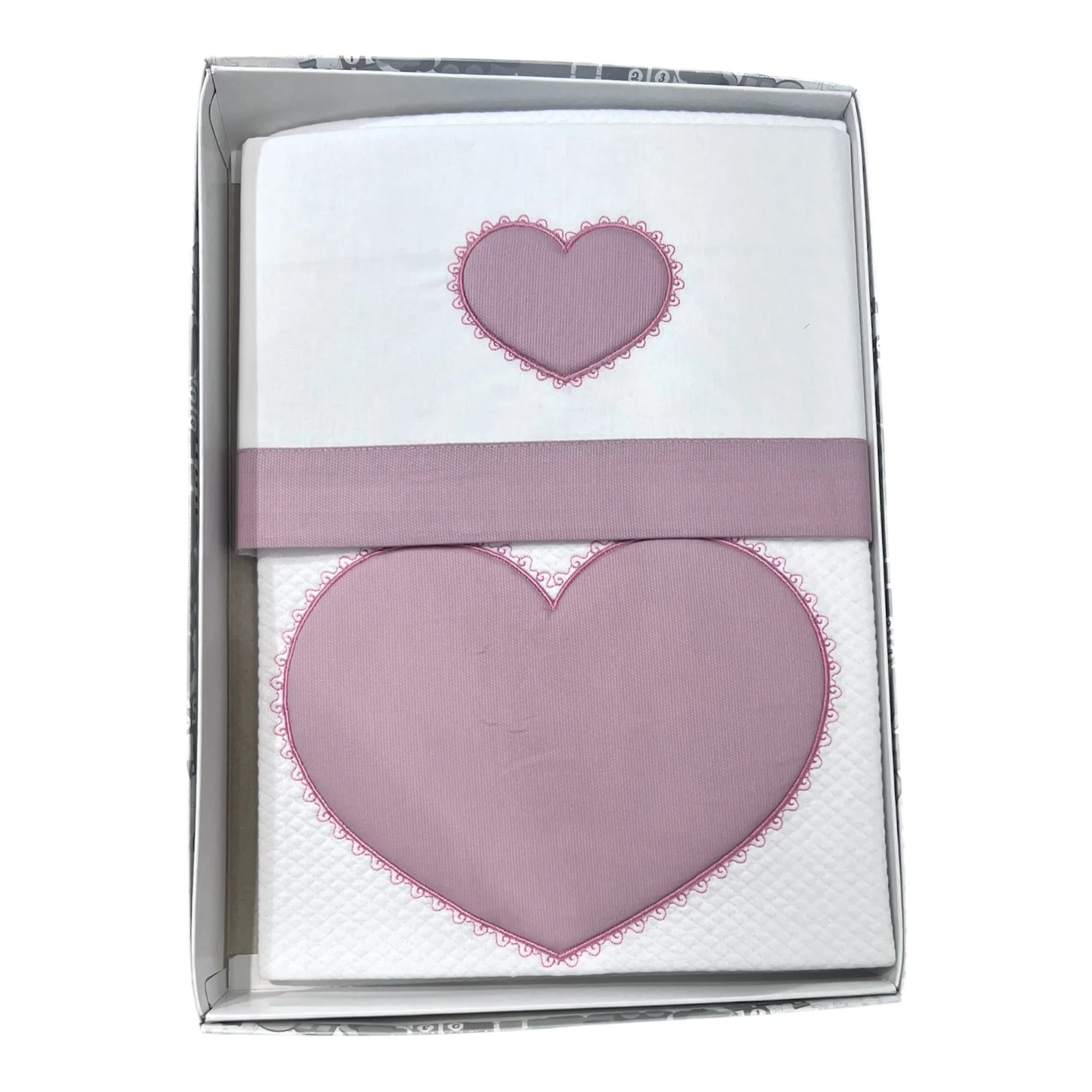 Ornella Coordinato Cuore Passeggino Copertina Cotone Più Lenzuola Sopra Sotto Federa 100% Cotone