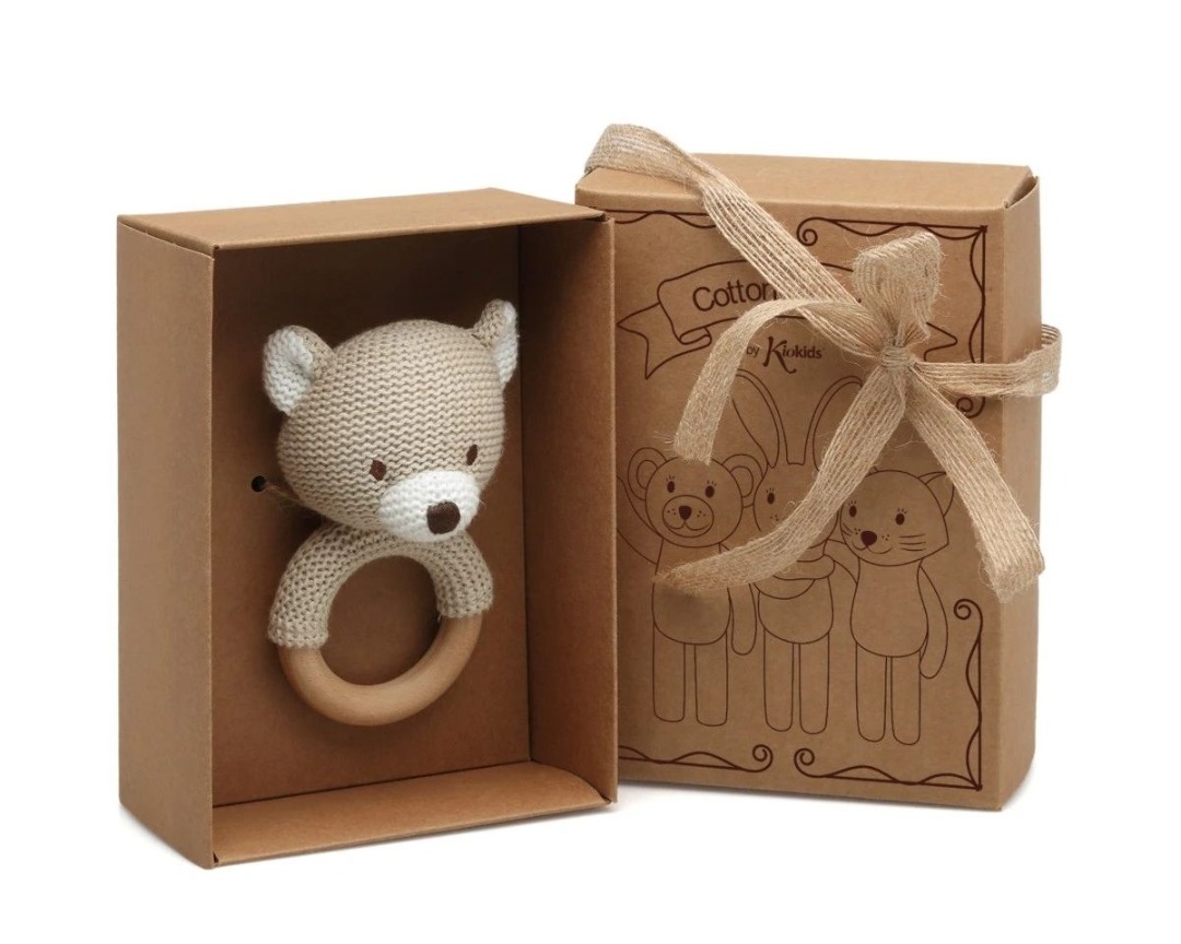 Orsetto Massaggiagengive e Sonaglio in Legno e Cotone – Kiokids
