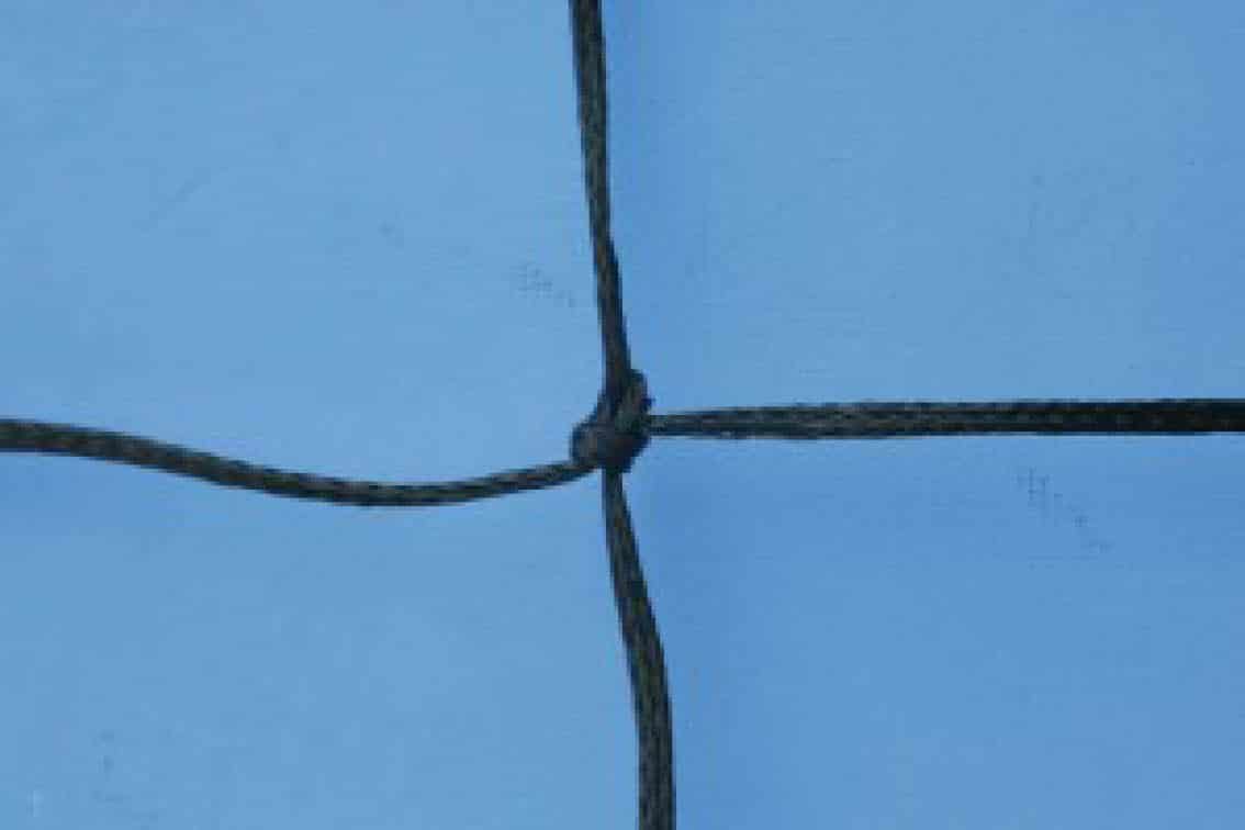 Materiale: Polietilene H.D. Maglia: 100 mm Diametro: 3,5 mm Materiale Nastro: Sopra: Poliestere 70 mm / Sotto: Poliestere 50 mm Materiale Cavo: Sopra: Acciaio ricoperto 5 mm / Sotto: Nylon 6 mm La rete viene fornita completa di tasche e antenne