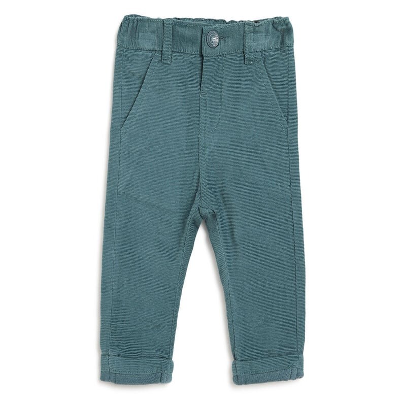 Pantaloni lunghi in velluto a coste con bottone automatico in vita.