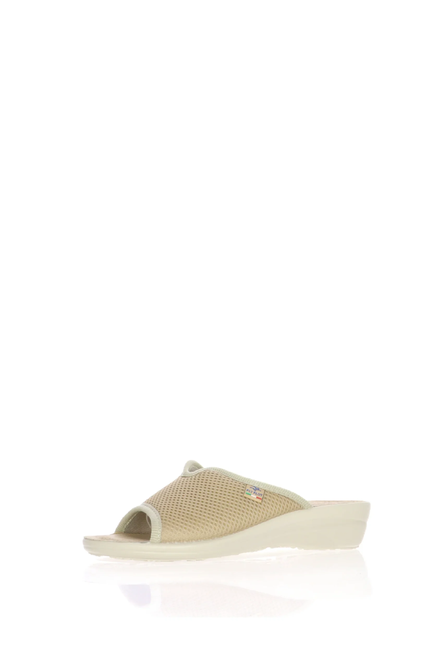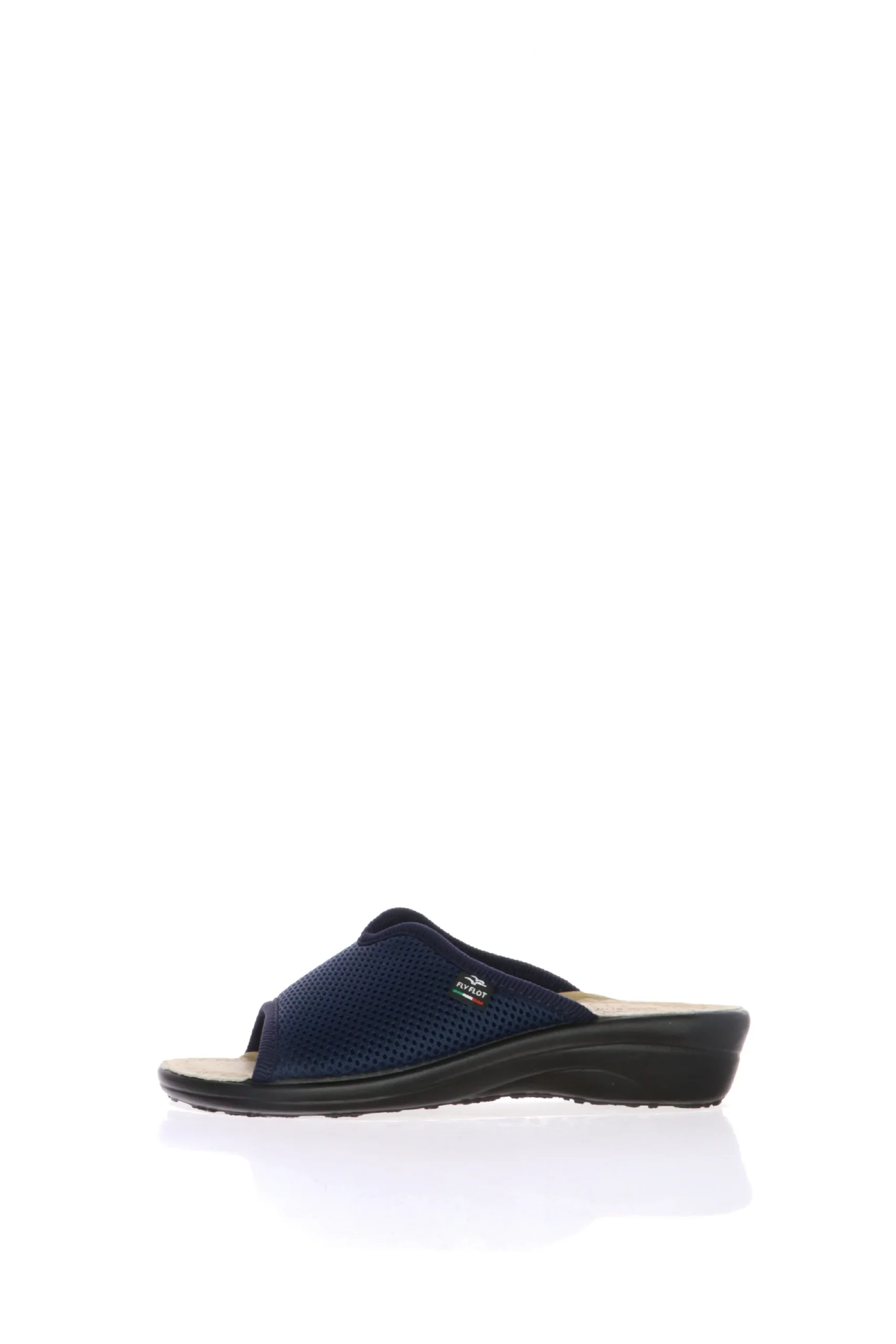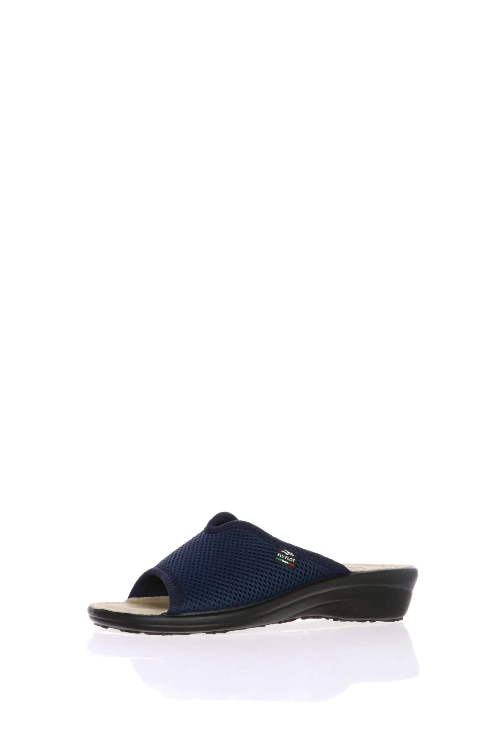 Pantofola aperta donna in morbido ed elasticizzato cotone a nido d’ape e sottopiede anatomico in vera pelle. Una pantofola che abbraccia la pianta e si adatta facilmenteal piede. Fly Flot, benssere italiano!