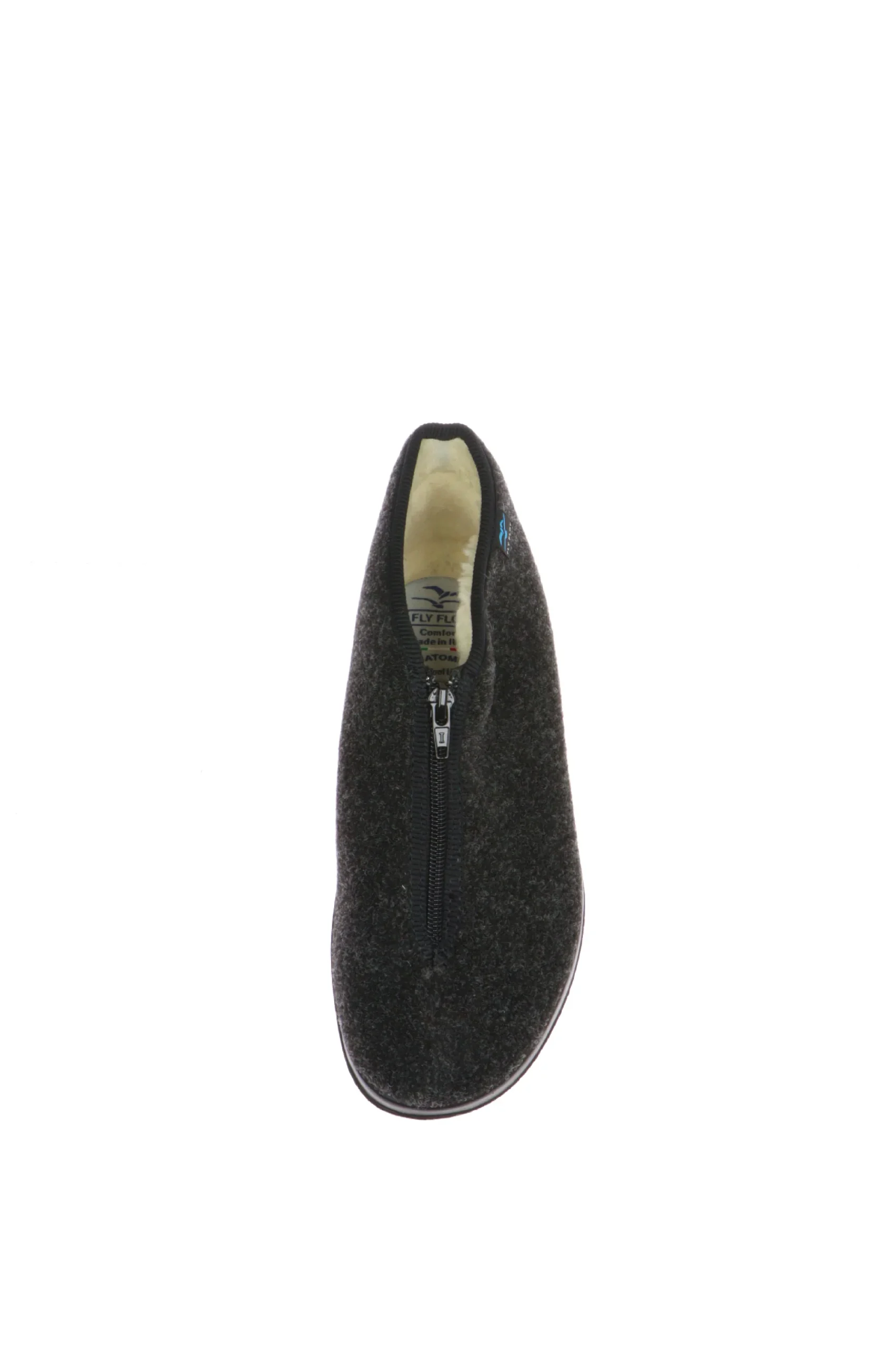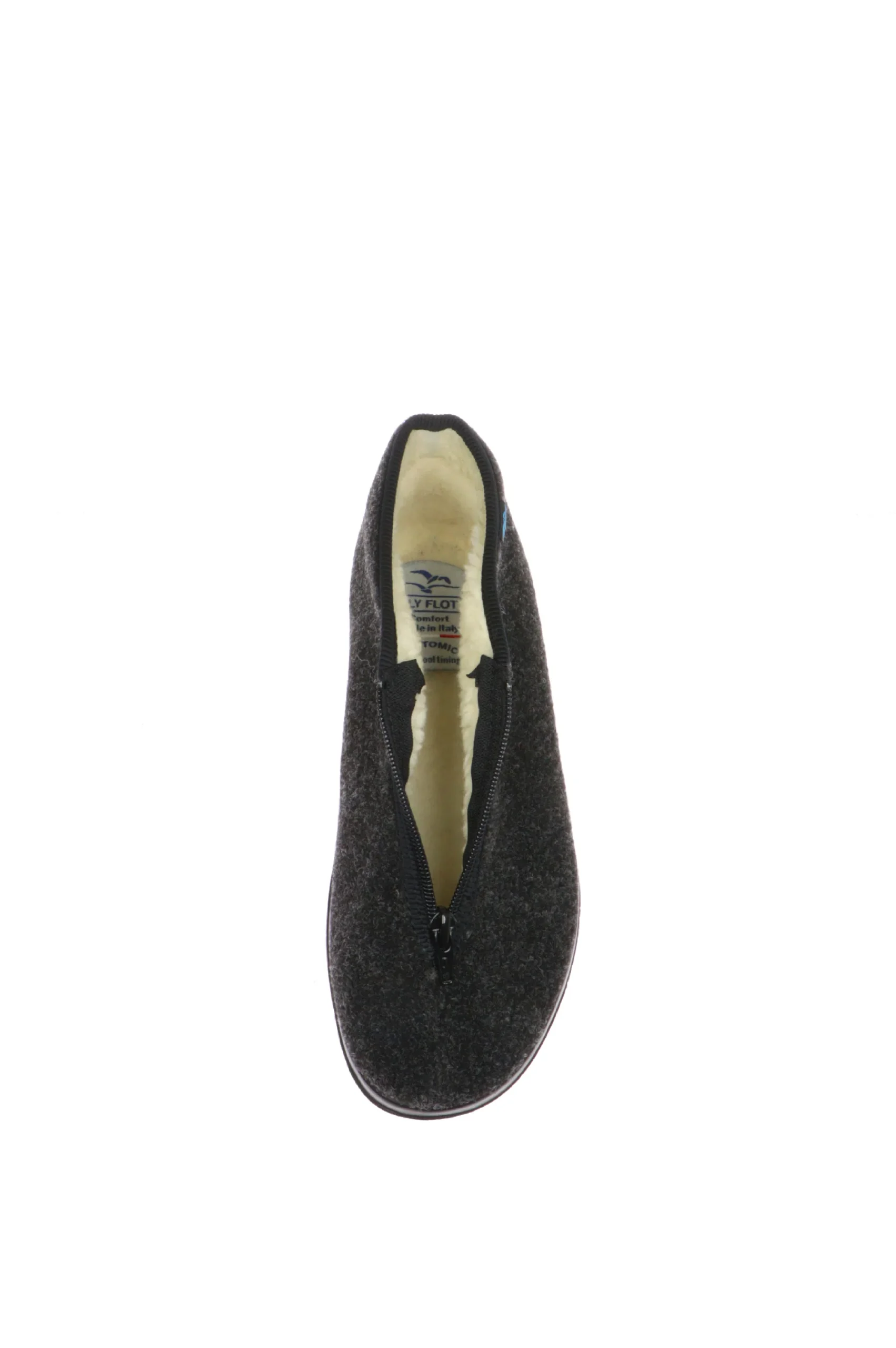 Pantofola chiusa da uomo prodotta in morbida lana con cerniera sul dorso del piede. Calda, morbida e flessibile.Fly Flot,stile e benessere ai tuoi piedi, made in Italy